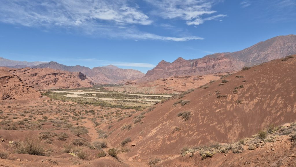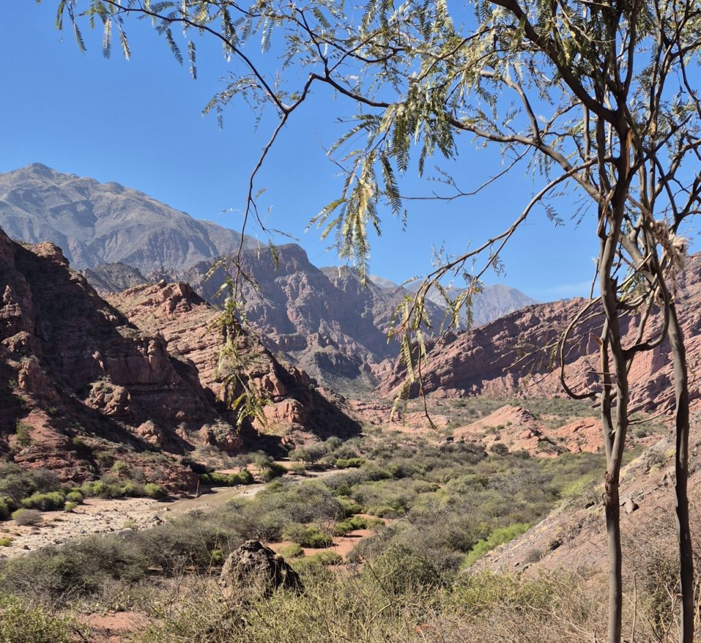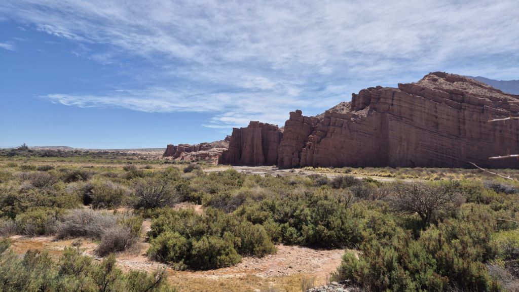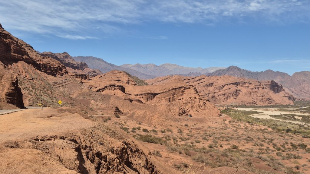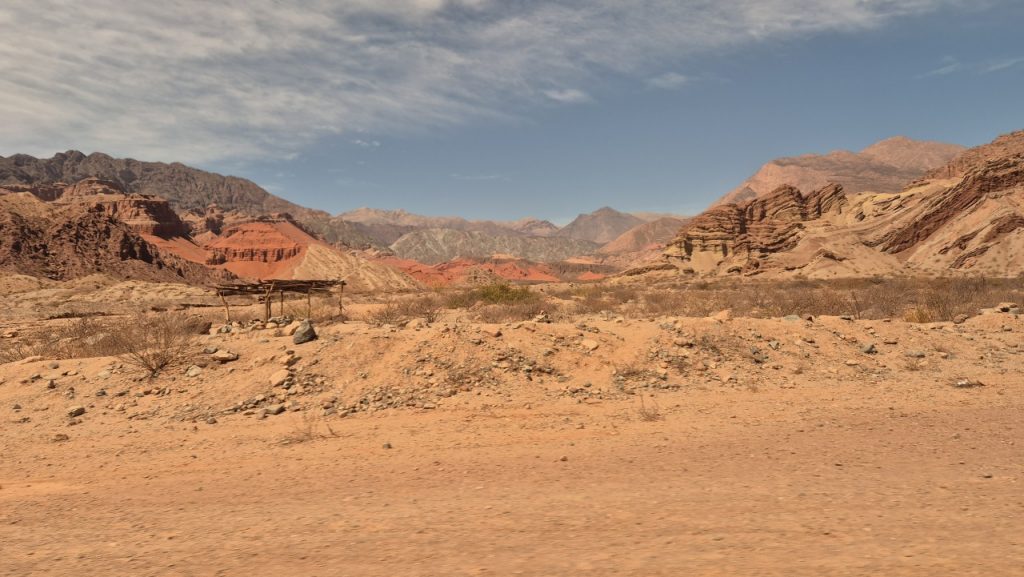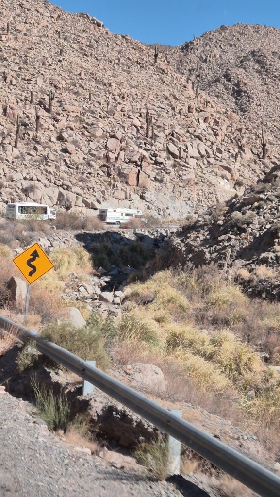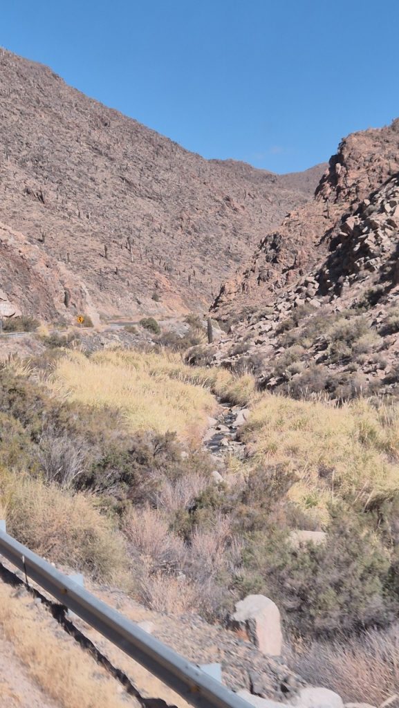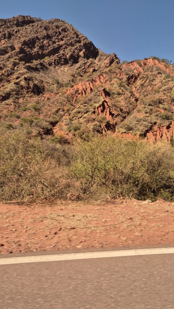 We booked a trip for the following day to Cafayate, known for being a wine producing area, which would give us both feel for the countryside, and a chance to taste the wine (we hoped). We weren’t disappointed with the scenery! Salta is on a large plain, surrounded by mountain ranges in the distance. It is very dry and there is little green growth, but once into the mountains fabulous, multicoloured rock formations stretch as far as the eye can see.