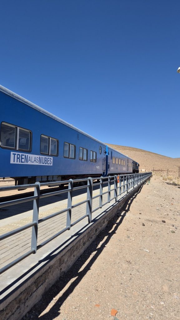 The following day however, day three, we succumbed to a full-on 100% tourist expereince, but it provided everything it promised, and more – Tren a las Nubes! This was a very slickly organised tour involving a bus trip with a few stops on the route to San Antonio de los Cobres to the west of Salta, a train ride from San Antonio to the Viaduct Polvorilla and then a bus ride back to Salta.
