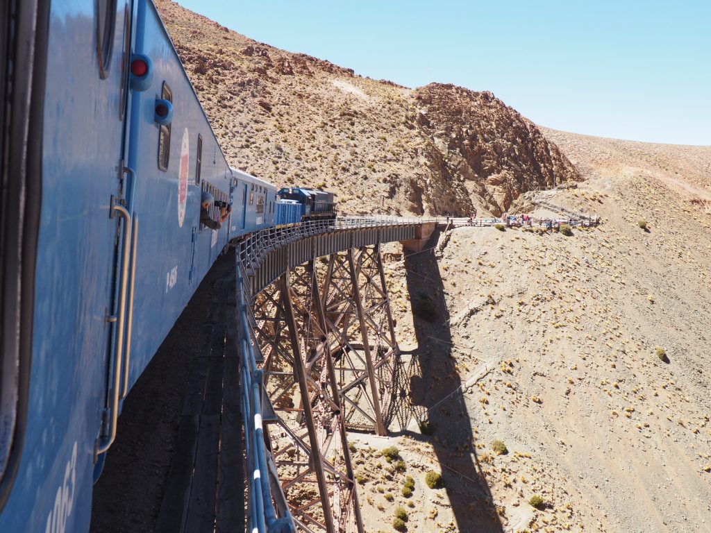 The trainline was laid as a way of moving mined material (gold, silver, ore, and borax) and connect Chile across the Andes to the northern regions of Argentina. Nowadays though, there is more money from the tourist trade with the highlight of the tour being the viaduct, which is one of the high points – literally – being 4,220m above sea level (that’s 13,800ft for those who think imperial). Salta is at 1187m by way of contrast and we were all advised many times during the trip to be aware of the effects of altitude sickness, and told that one way to combat this is to suck coca leaves.