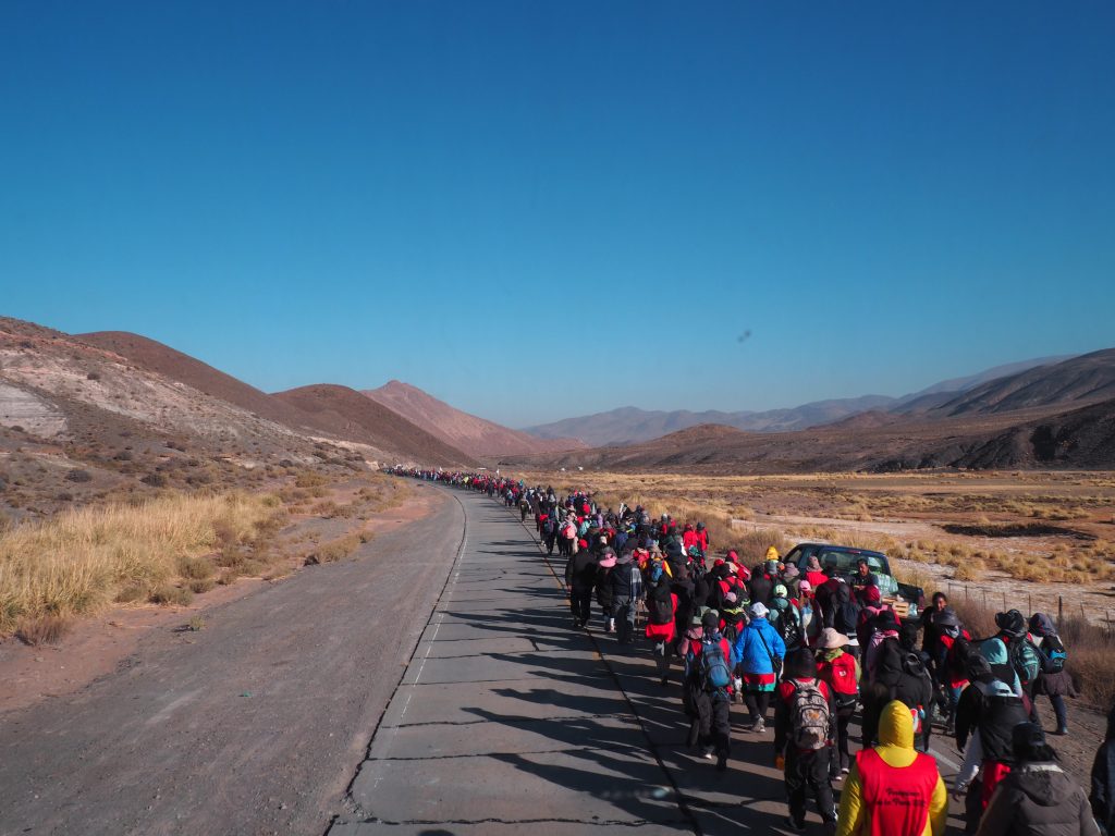 The scenery on the bus journey back was no less impressive. What was equally impressive was actually coming across groups of pilgrims in their hundreds supported by a vast road train of logistics support as they moved from campsite to campsite on their pilgrimage.