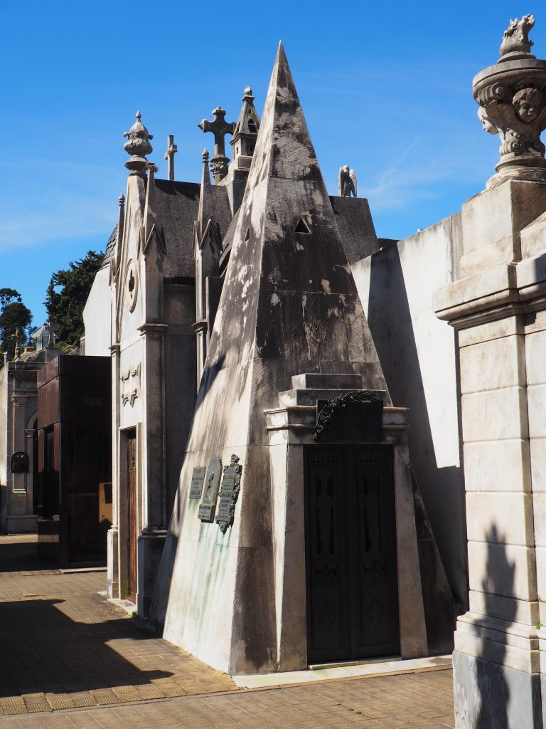 The second thing to mention is that there are a LOT of tombs and they are indeed ‘ornate’, with each different to the other. It felt like in some instances that there was a bit of ‘one-up-manship’ going on. Some seemingly ancient (although the cemetery was only started in 1822), some new, gothic, art deco, austerely simple, lavishly decorated. You name it – that style was there somewhere. Quite a lot of the tombs were in a somewhat dilapidated state, broken windows and doors, some seemingly bricked up, but there was also a lot of work going on, tombs being renovated, and tidied up and cleaned. South American culture (and many others) celebrate the ‘death day’ of individuals, recognising and celebrating their achievements, and several tombs are covered in ‘tribute plaques’ – homages of thanks from grateful recipients for the good deeds done.