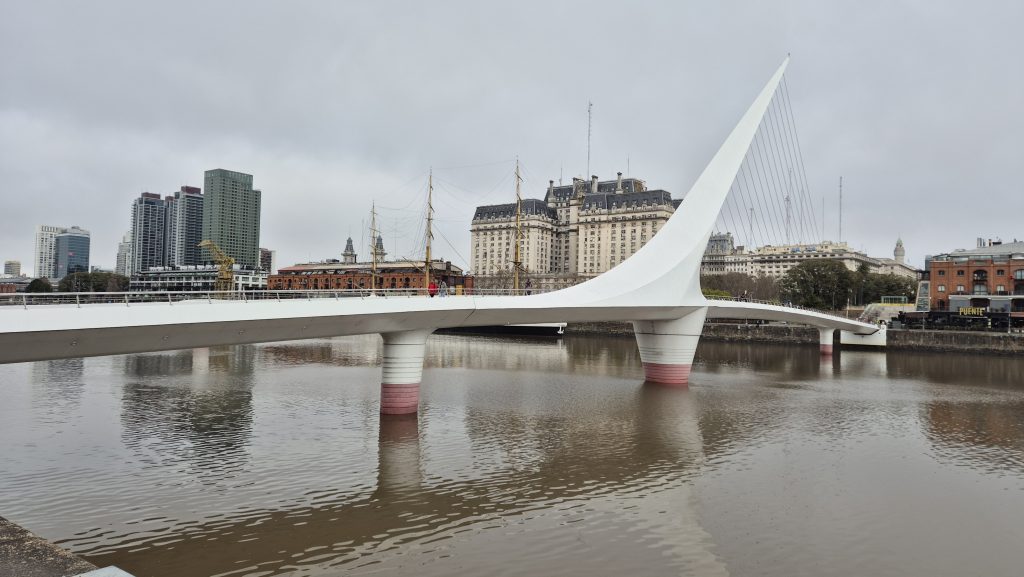 The Plaza de Mayo was a short stroll to the old docks, where on crossing the bridge we encountered a couple busking by dancing the Tango. Definitely not usual in the UK. The old habour frontage, like many, has been well-redeveloped with apartment blocks and cafes and restaurants sitting alongside old, now ornamental, cranes and loading gantries.