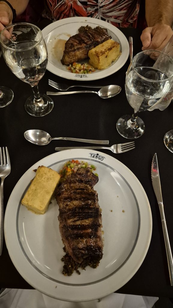 We enjoyed an evening meal at a local restaurant and experienced our first Argentinian steak – a ‘half strip’ which is sirloin. It was substantial and very tasty, served with chips or sweet potato fries which were more like wedges than fries and in large quantities. It was a very friendly and popular restaurant, definitely worth the visit, and we are enjoying spending some time in Buenos and practising (mangling) our spanish.