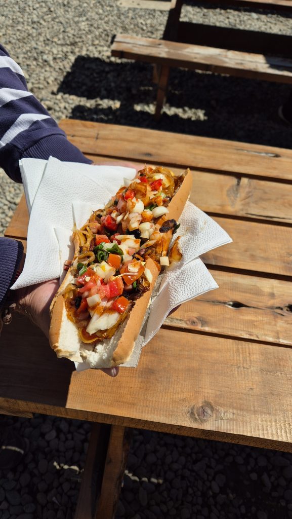 The next day was sunny, but cold to start, so we decided to use the local buses to visit Colonia Suiza, a small village established by Swiss ex-pats in 1899, with Swiss Chalet style houses and fronting on the edge of the lake. After a bit of help from tourist information we managed to navigate the buses and changes and arrived at Colonia Suiza without problem. Not dissimilar to La Cumbricita in some ways, this too had a bit of an “un-Argentinian” feel to it; it was a lot smaller, and it’s centre was definitely more akin to a German Christmas fair, but without Christmas being involved. Had it been grey and rainy, it would have definitely felt like Germany or Austria in December. The image was cemented by the Berliner Brewery, on the edge of the main centre. There were a couple of open-air food courts – wursts, goulash, crepes, so we indulged before climbing to a viewpoint over the lake. We discovered on the bus ride back that the village is very well spread out and we passed several more restaurants, a couple more breweries and a dinosaur experience park, before getting back into Bariloche.