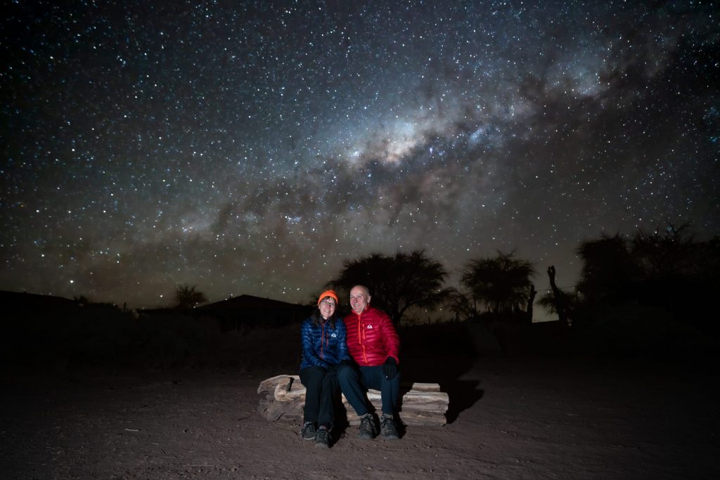 After a day exploring the town, then a quick rest at the hostal, we headed back in for an astonomy tour. This took us out of the town a few miles to an area with almost no light pollution whatsoever. We thought we’d seen dark before, but this was really dark. Our astronomy expert used red light to guide to reclining seats, and advised that over the course of the next 15 minutes we’d see more and more as our eyes became fully accustomerd to the total darkness. Over the next couple of hours we got to see more and more of the most incredible night sky: the scorpio constellation, the Big Magallan Cloud, and of course, the Milky Way. This we examined through the telescope revealing the enormity of what looks like a cloud in the night sky, then being shown Saturn and its moons, also through the telescope. We can’t claim credit for the pics below, but can reassure you that the one of us isn’t superimposed, but is a time exposure and flash at the end (for those of a curious photographic persuasion).