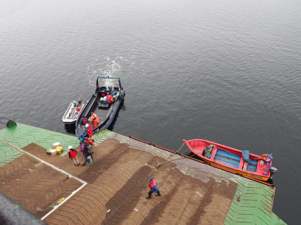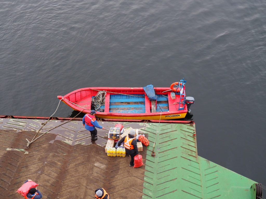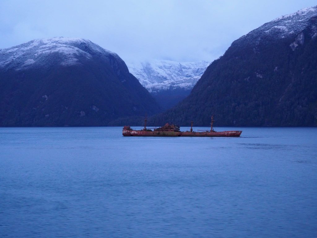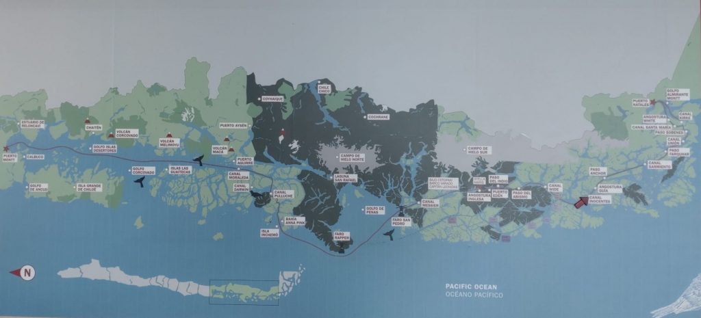 This tale takes a little reading, but is the reason for our delayed journey and our discovery of Valdivia and Puerto Varas, both places we enjoyed but would not have discovered if not for these events. After much research into the onward journey south we opted for something different – travelling through southern Patagonia by boat. The Navimag Ferry is primarily a cargo operator but “in season” it also takes passengers. A four day/three night 1700km ferry trip, during which passengers may be able to spot whales, dolphins and seals, as well as passing through some amazing Pategonian scenery. This is most definitely not a cruise: it is catered with no choice of menu; there are set meal times and everyone eats together; and the only entertainment other than scenery, is an occasional informative talk by a guide, board games, and maybe some yoga. Oh, and the anticipation of seeing some sea life (maybe). We were looking for different from buses and flying, and this was definitely different.