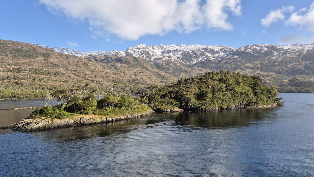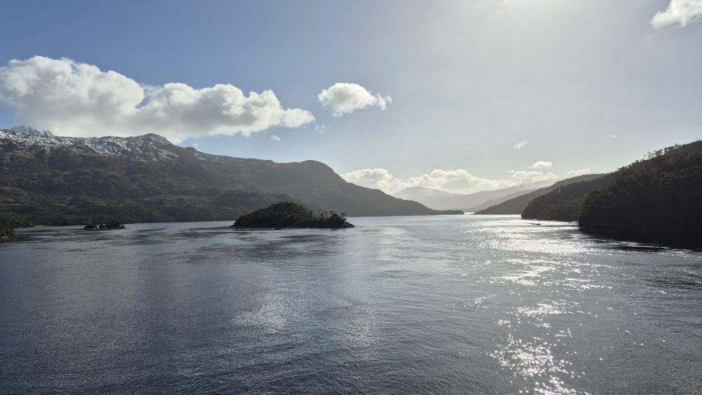 The evening brought a little concern as the crew pre-emptively offered seasickness pills in readiness for the next day. Much of the journey is through the Pategonian Fjiords but the next day was a section across the Gulf of Penas – an open expanse of Pacific which has a reputation for being rough.