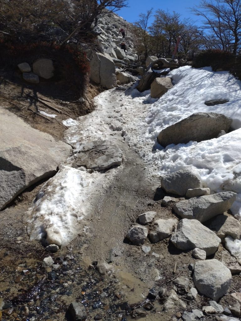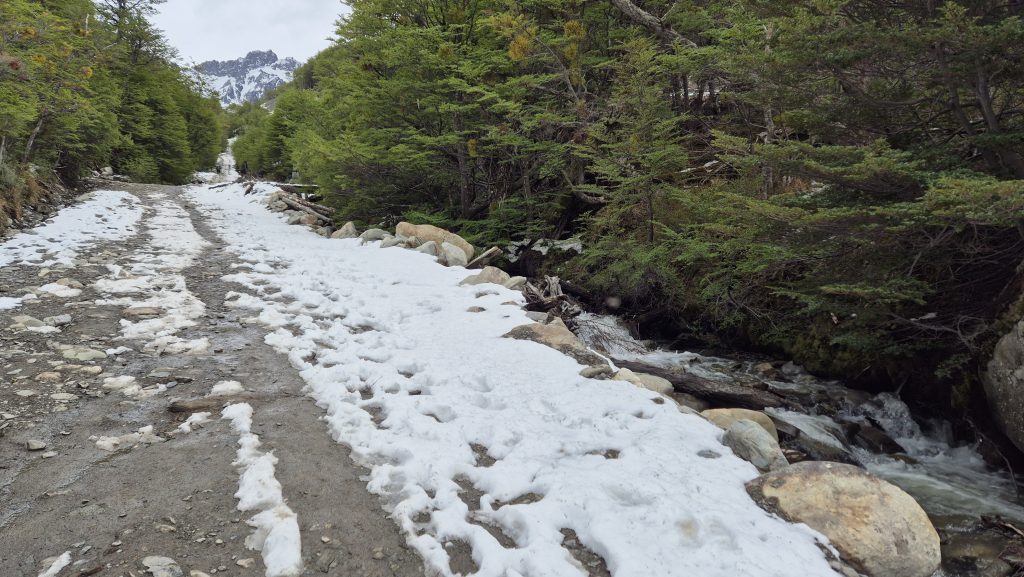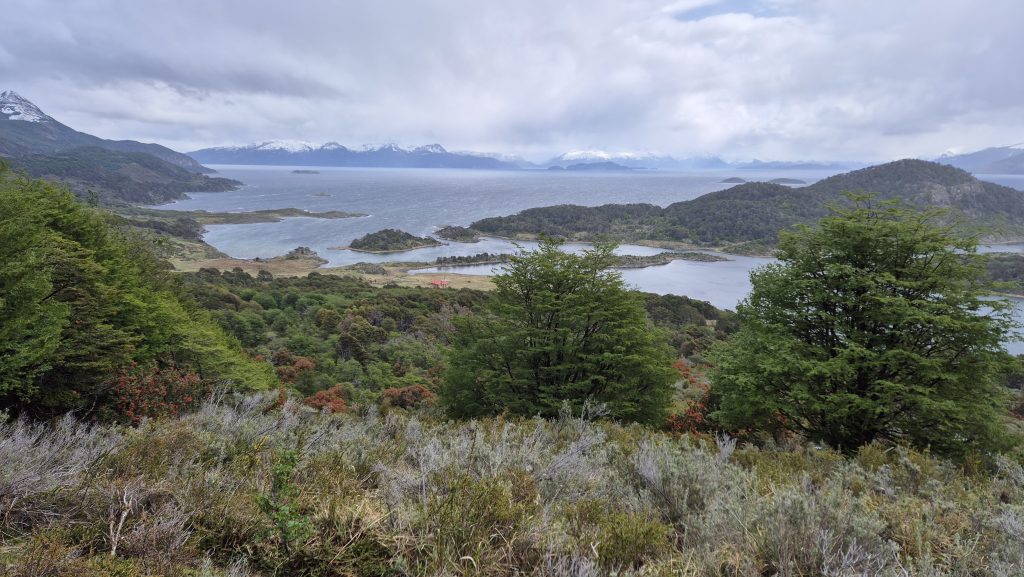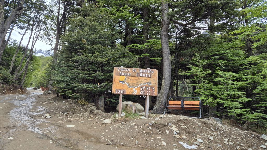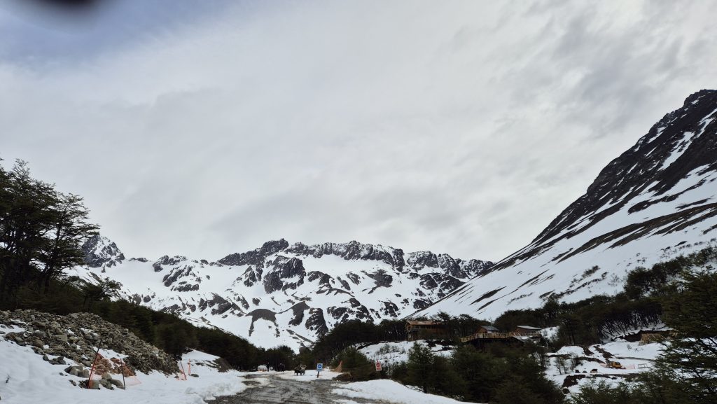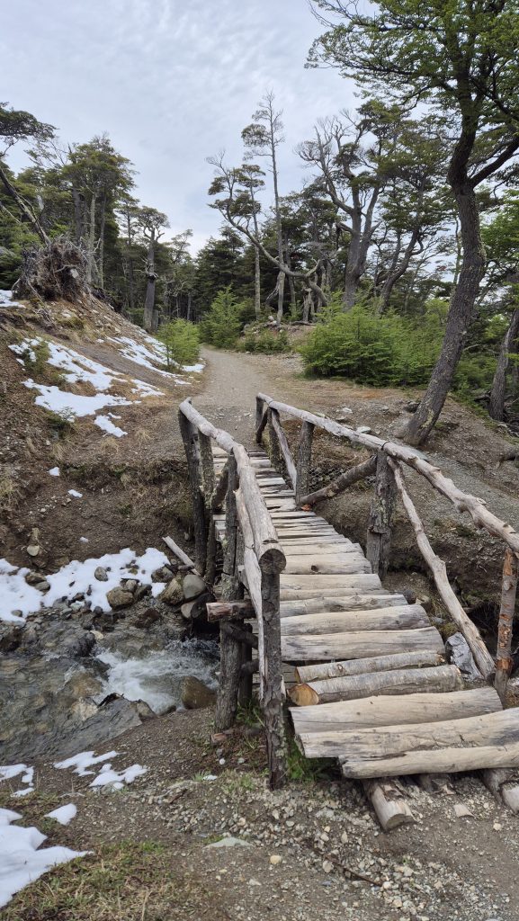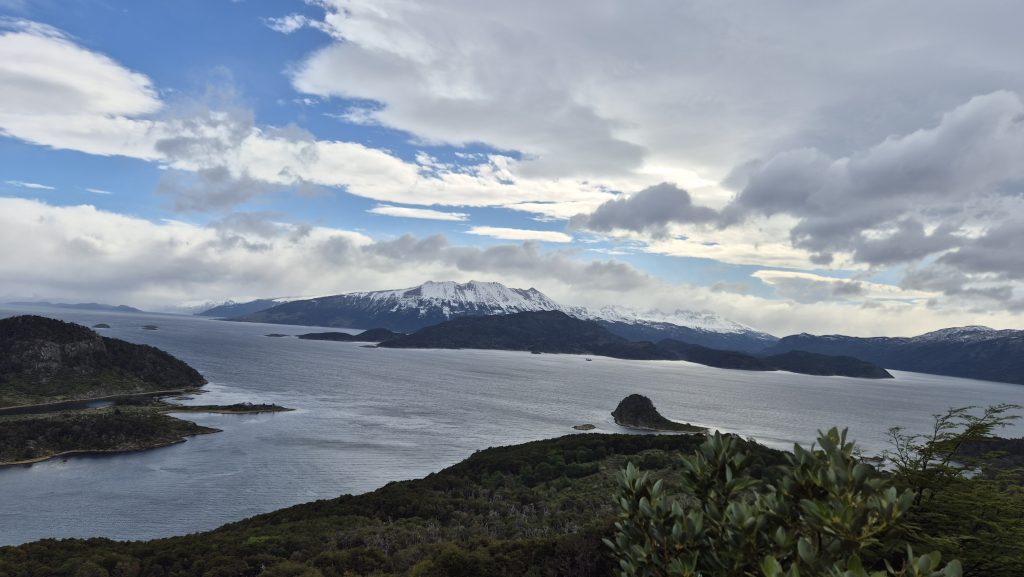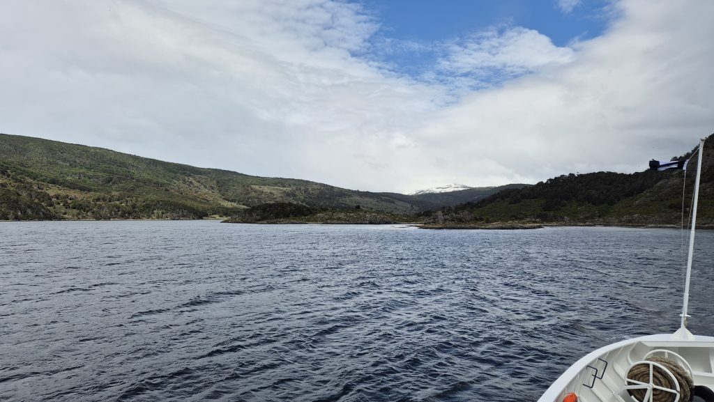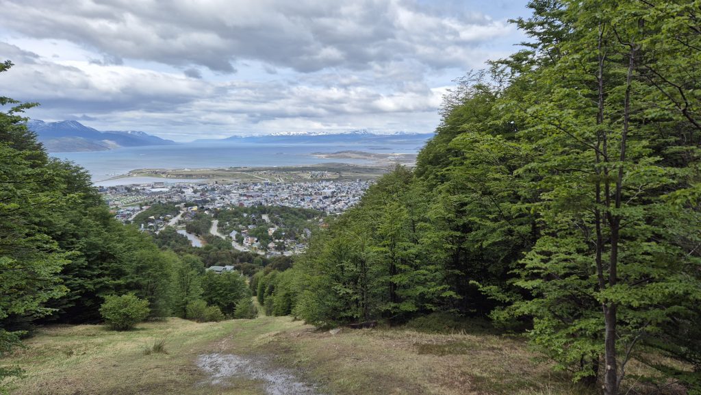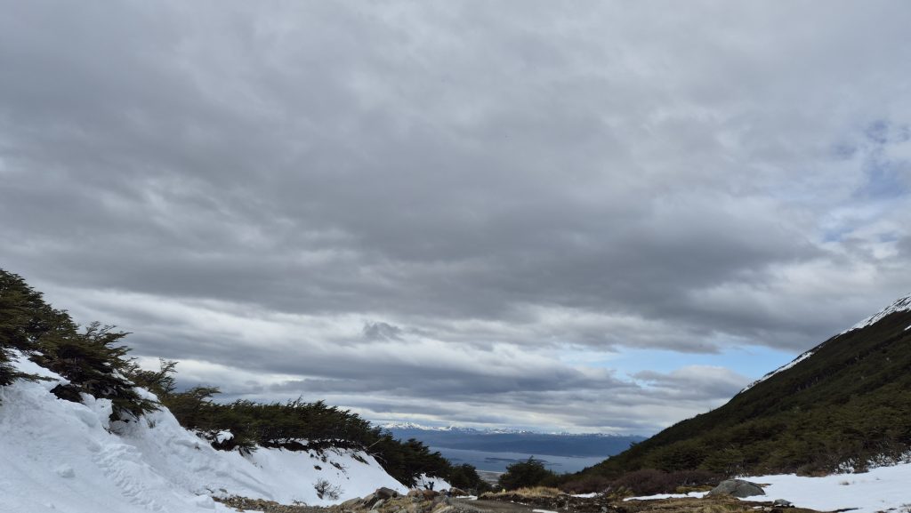 Our third and final day saw us take a hike, literally. Up Glacier Martial. After a walk through and out of town, an initially up muddy wet footpaths covered in streams of snowmelt, we arrived at the base of the trails up the mountain. From here the paths were snowcovered and slippery up to the base of the glacier but the views of the mountains and the Beagle were worth the climb. Our way back was a different path which wound through beautiful but challengingly wet, and muddy, woodland before descending to the town via and incredibly steep hill up which a chairlift used to ascend. Again, the weather was kind and it was a lovely finish to a journey as far south (on the main body of land, anyway), as anyone can get. Tomorrow we start the final leg north……