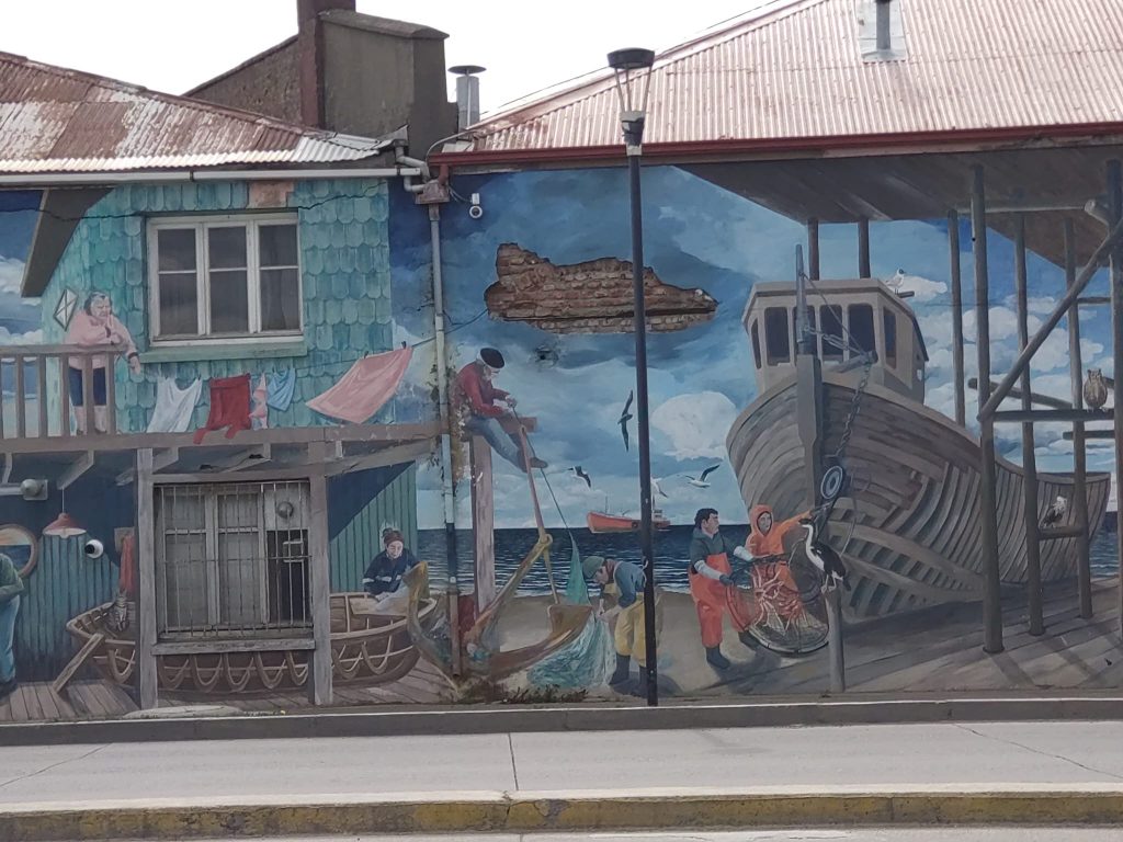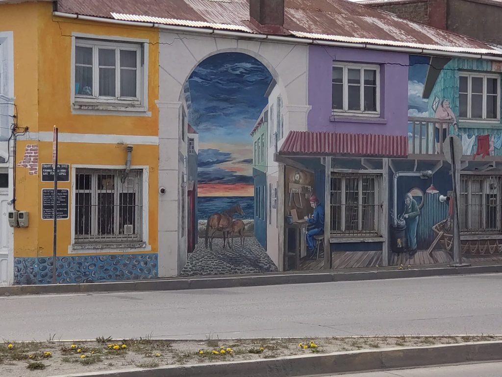 From Puerto Natales we bused to Punta Arenas (Sandy Point) with a couple of options to get to Ushuaia. Punta Arenas is a lovely port city with an eclectic mix of colonial architecture and vibrant street art and is actually also the gateway for most Antarctic expeditions. A guided walking tour on our second morning gave us a good insight into it’s history and culture and that of the indigenous population, sadly, now largely extinct. Our guide was unflinchingly frank about the historical colonisation of South Patagonia.
