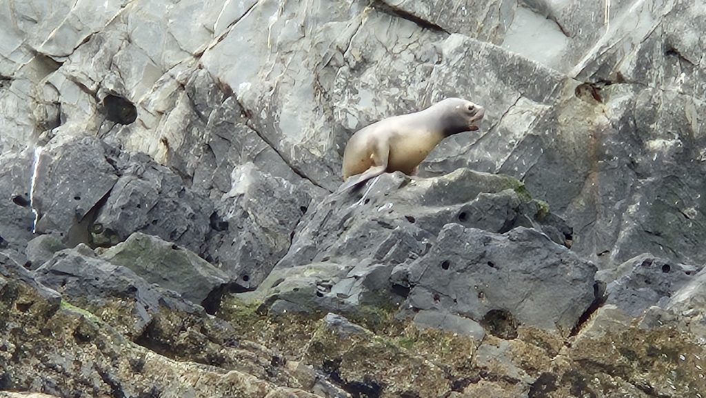 During the evening we passed back into much calmer waters and had a very quiet night, rising early on our final full day to spot the wreck of a ship deliberately forced onto the rocks for an insurance scam – the captain selling the cargo and then claiming it’s loss after the wrecking. The scam failed, the captain was jailed, but the ship was left where it was – perhaps a warning to others.