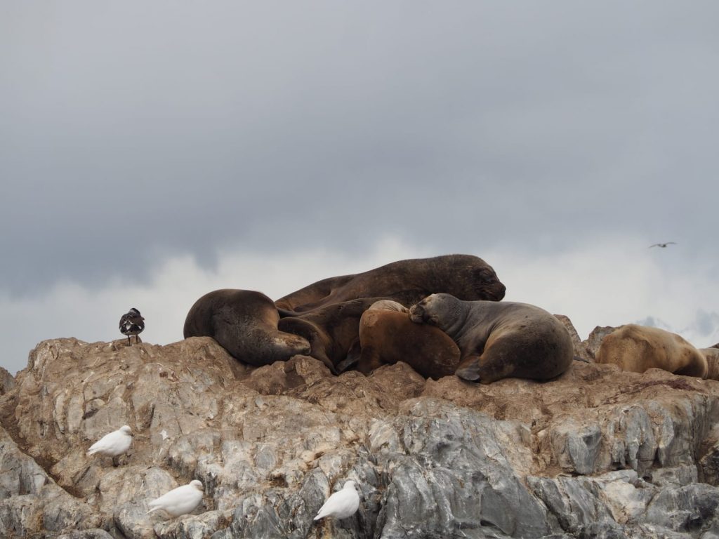 Our second day was a boat to the Isla Martillo to see penguins – missed earlier in the trip. Kind weather dawned and a smooth catamaran ride took us to not only penguins, but sea lions, an elephant seal, cormorants and skewers, and of course, the famous ‘lighthouse Fin del Mundo’ marking rocks in the middle of the Beagle Channel.