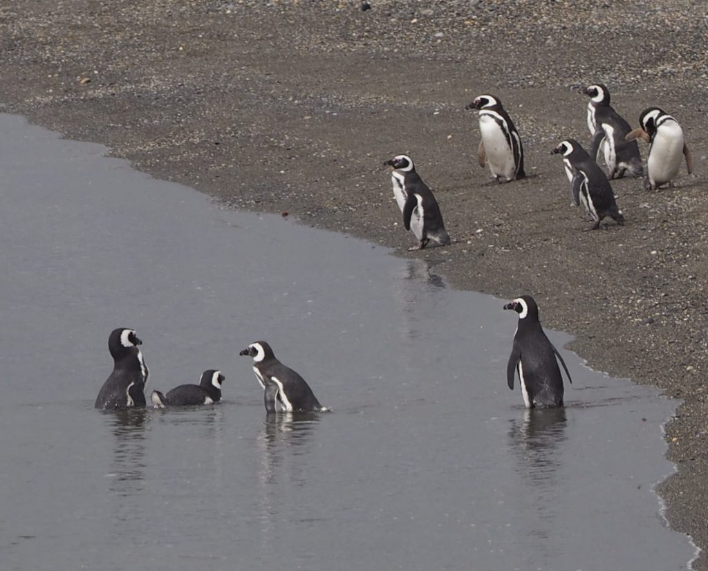 We experienced yet another approach to Argentinian immigration on leaving our ship – none whatsoever. And so we had arrived back in Argentina, our base for the next three days being Ushuaia. A medium sized, very touristy, port town of mainly low rise buildings scattered loosely around the bay and up the foothills to snowcapped mountains. It felt like a ski resort by the sea – which it is. Lots of shops selling high end out-door gear, souvenirs and many restaurants. It is only when you look at a map you realise just how remote it is at the most southerly mainland end of the Americas. They make much of the island (that’s what it is after all) being Tierra del Fuego (Land of Fire) – so called, because one of the indigenous peoples travelled the waters in canoes in which they always had a fire burning – it seemed to watchers from the sea that the land was on fire.