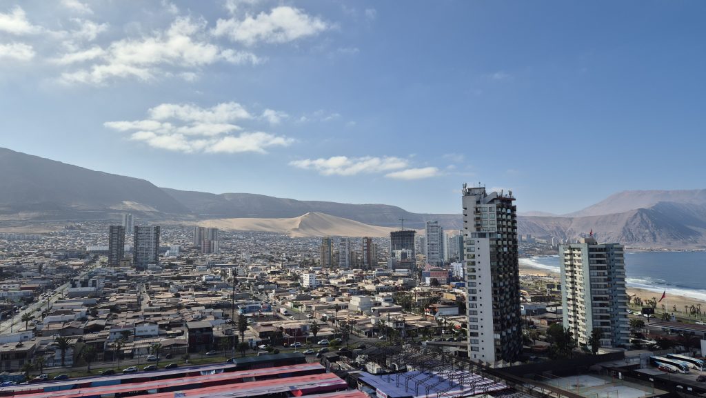 On leaving San Pedro de Atacama, we had no firm plan other than to explore a bit more of northern Chile, so should we travel to Antofagasta, the regional capital of the Atacama Desert region, or head further north up to Iquique, a previously prosperous saltpeter mining town and now a (probably equally prosperous) tourist destination which is a tax-free port area? Either way, our first destination was Calama, a mining town in the middle of the Atacama Desert. It probably has it’s charms somewhere, but we had been advised that it wasn’t really worth a visit. However, it is a bus hub for many destinations so every bus seems to terminate there. After a smooth couple of hours, we arrived at the terminal for our bus company and asked about onward journeys to either Antofagasta or Iquique. “No, not with us” was the reply and we were directed to a different bus company a few blocks away. The walk helped to cement our decision not to stay in Calama.