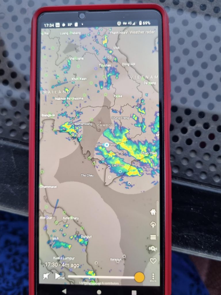 we were able to commandeer a seat on the terrace and watched the weather roll across the Mekong