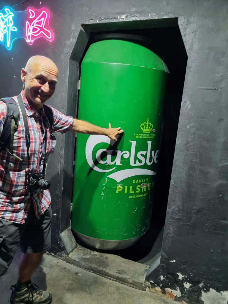 On finding we were the only customers at the ‘5 Drunk Men’ bar (on the 5th floor),