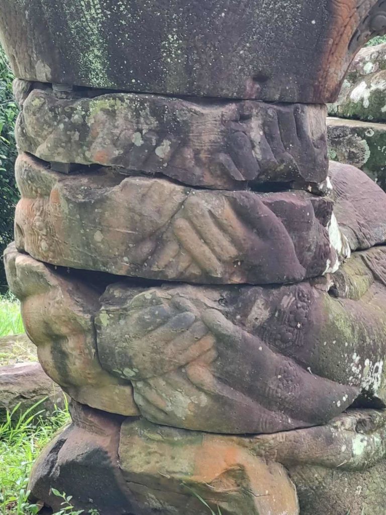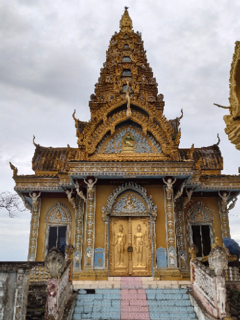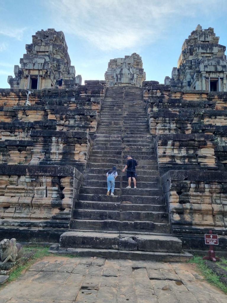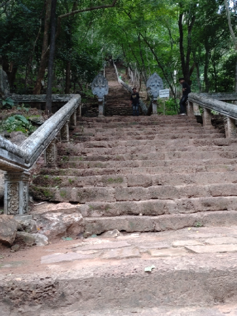 Lunch was on a lake front at Banon Hill where many Cambodian families go at weekends to have time as a family, and was followed by a climb (more stairs) up to a Buddhist temple. Like those in Siem Reap, this was over 1000 years old, and it showed – no renovation here, but this only added to the charm.