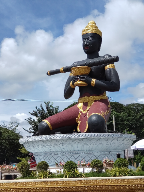 Our first stop was the roundabout at the edge of Battambang, which Sopron explained actually means ‘Lost Stick’. According to legend, the king of the time dropped his stick (a bit confusing this, but we think it was something to do with his office of authority), into the river by mistake and it was lost. A man dived into the river and found it for him, so the king decided that this region was thereafter to be renamed Battambang, after the lost and recovered stick/”rod of office”, and people afterwards revered the man as what can only be described as a “saint” in European terms.