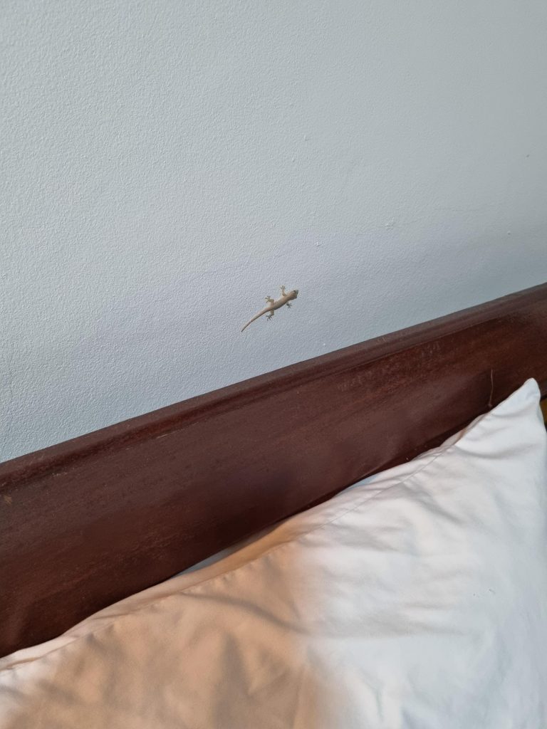 We have also discovered we have a third room occupant. As he’s no bother – and is in fact, pretty helpful in devouring the odd mosquito etc, we decided to let him stay.