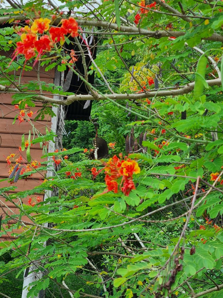 A walk around the island took us only a couple of hours, including a stop for more coffee. We were surprised at how delightfully peaceful it is – no cars or lorries, only dogs, cats, chickens, cows, a small number of motor-scooters, bicycles and an occasional goat. Very few people too, although hopefully the tourist influx will improve as the rain dries to allow the locals to fill their guesthouses, of which there are many. It was really lovely to just meander along the road admiring some of the beautiful gardens and scenery.