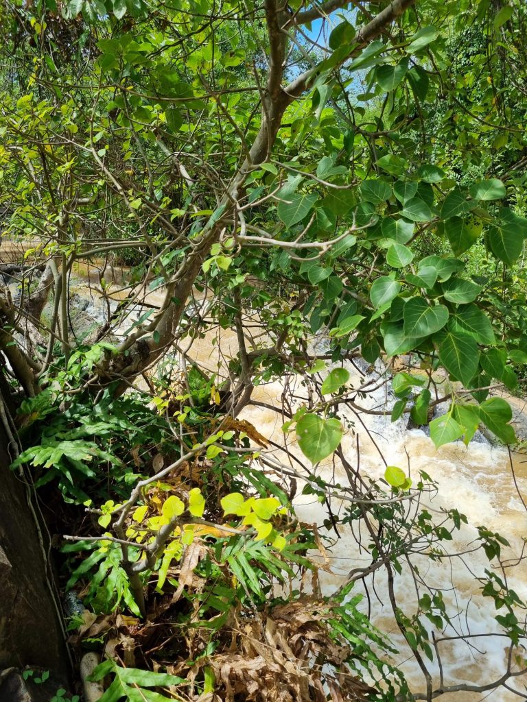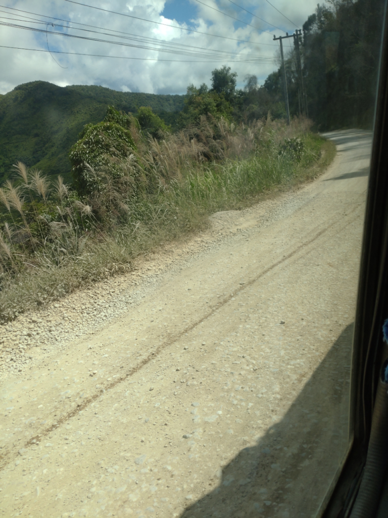 It didn’t take us long to work out that although Laos purportedly has 10,000km or paved roads, many of these are in dire need of repair! To be fair, the driver was really good and wove his way through potholes, roadworks and over many, many narrow bridges – but it all takes time, and in a 40ft coach, it takes a lot of time! It was dusty (the roadside furniture and houses and stalls we passed were caked in thick dust from the mud from the roadworks) and there were many trucks, diggers, and workmen. In addition to the general state of the road, we seemed to stop regularly on the roadside for people to get off and ‘use the facilities’, but with only one apparently “scheduled” rest stop for about 15 minutes.