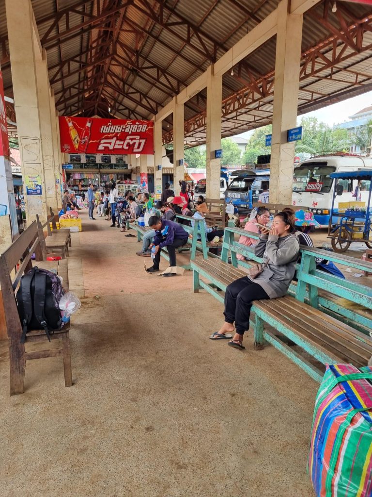 On arrival in Pakse, our original minivan driver took us through the bus station to a large 40 seater bus, thrust a ticket in our hands and said that this was our bus to Thakhek, and promptly vanished like a genie back into the lamp. Hmmm, not what we had been promised or expected! After asking around though (including at the ticket office, who could probably have upsold an additional ticket, if the option existed) we were told unequivocally that this was the only option that day, it was leaving at 12.30pm and would arrive in Thakhek around 7.30/8.00pm – depending on the road conditions and how many pick ups and drop offs. Having been on Cambodian buses we’d got used to them also being a postal courier service. Ahhh, the naivety of the innocent traveller was about to be challenged again. We spent a little time “enjoying” the local bus station, bought some snacks and water, and duly boarded the bus at appointed time.