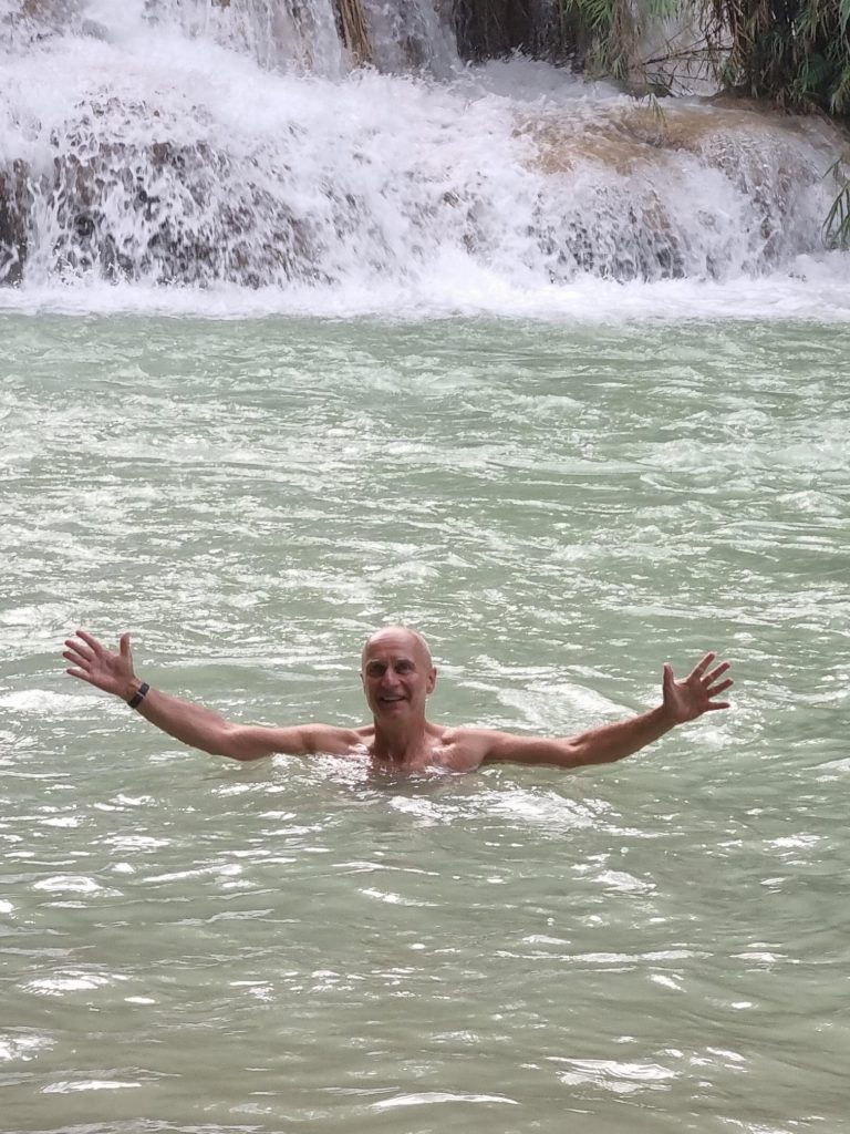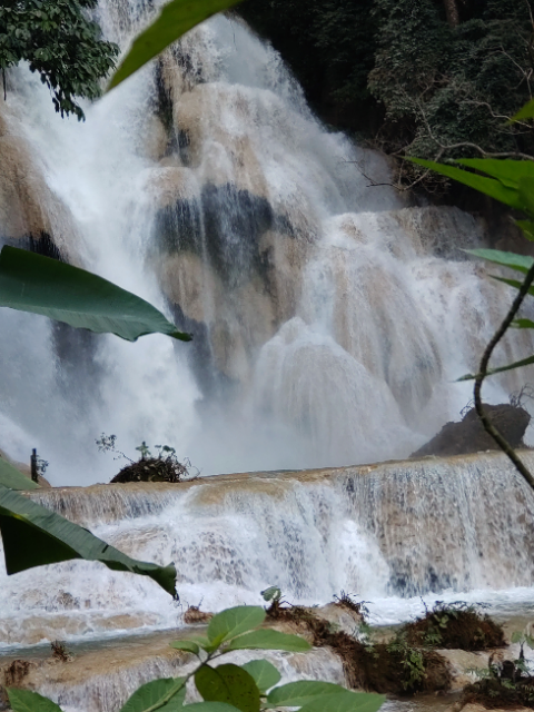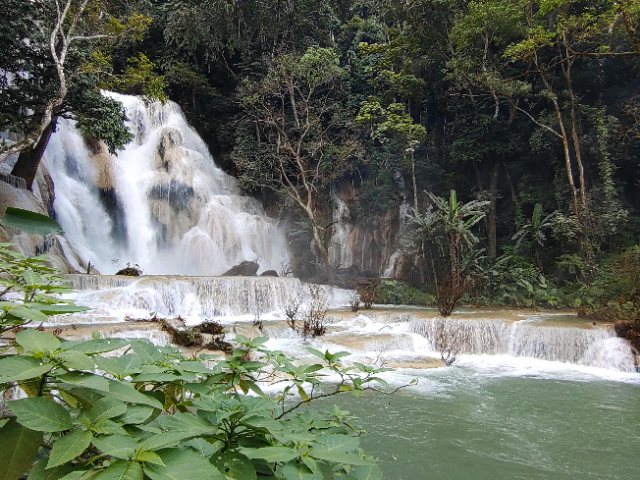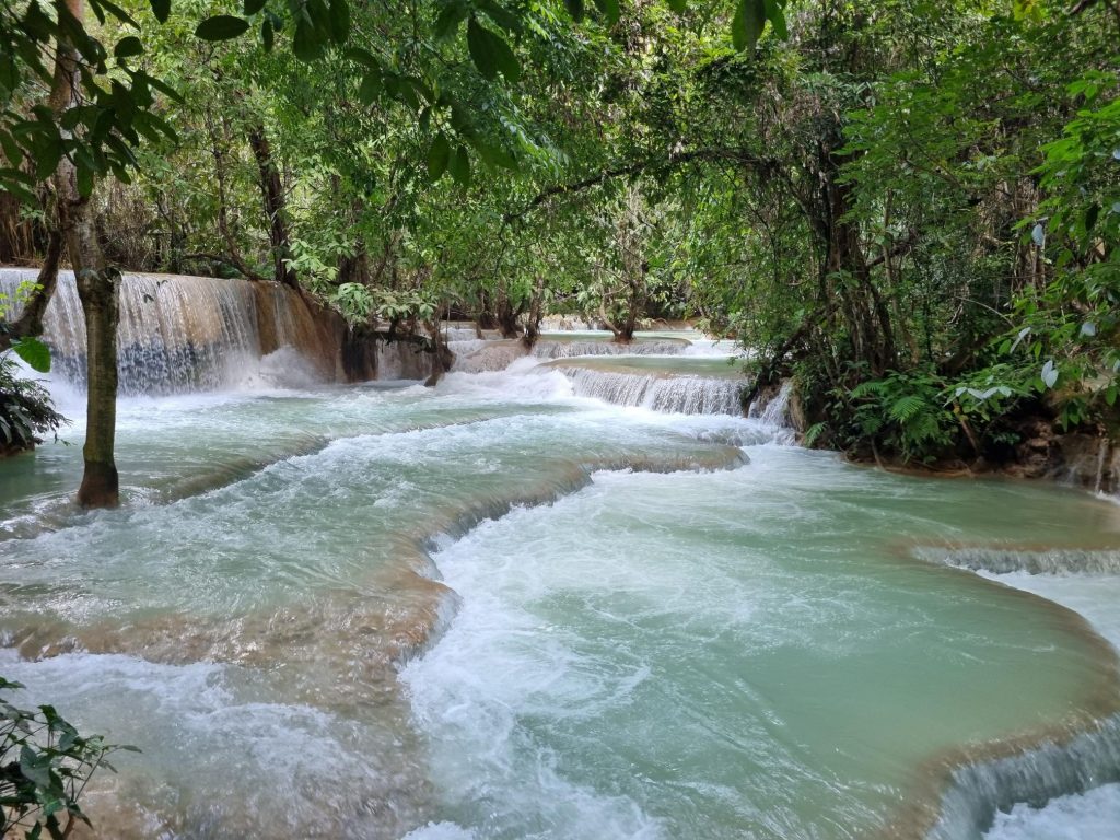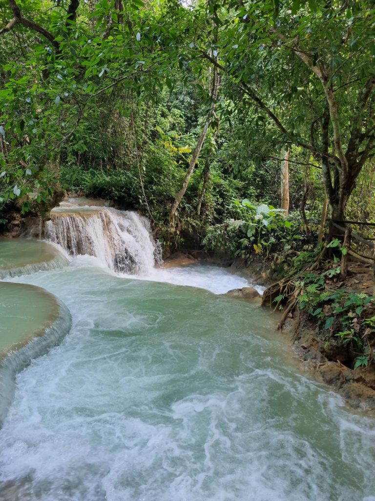 In the afternoon we also decided to visit Kuang Si waterfalls. These seemed to be on every advertised tour and various guides rave about them on line. We hired a Tuktuk to take us there, the road also living up to our expectations of travelling in Laos, the 30km taking about an hour each way, and having more holes than a political manifesto. After a picturesque ride the falls did not disappoint!