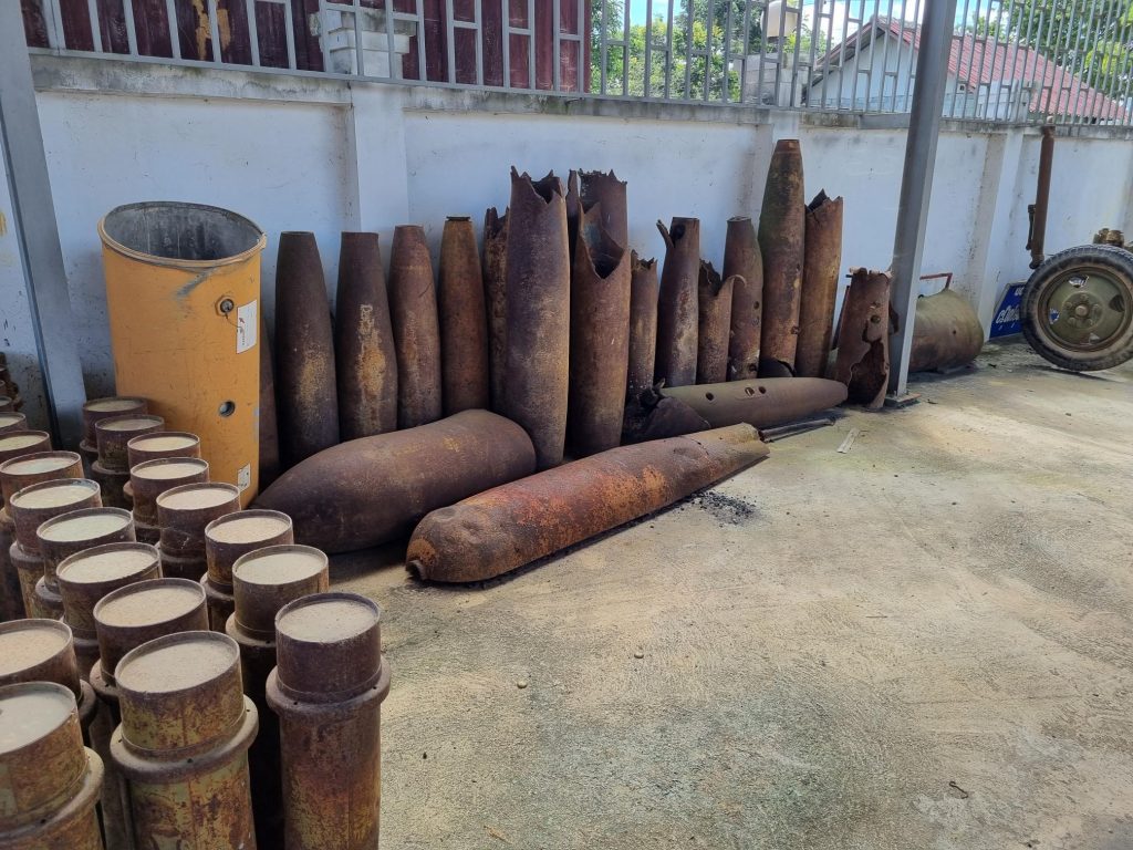 First stop was a general information centre where we were given some time to read about the area and understand a little more about the history of the bombing of Laos in general. Something that we had been introduced to in Southern Laos and reminded of all the way through the country. Known as the “secret war” the CIA in militarised fashion, repeatedly targeted Laos – which was neutral – during the Vietnam war, making it the most heavily bombed country per capita in the world. Over two million tonnes of bombs were dropped between 1964 and 1973 – 580,000 missions, equal to one planeload every eight minutes, 24 hours per day for nine years. Up to 30% of these bombs didn’t explode, leaving a hideous legacy that has killed 20,000 since 1973 and continues to cause injuries today, with an average of fifty per year, down from over 300 per year in 2008 (source:www.tourismlaos.org). The rear of the information centre had a range of decommissioned ordnance, which puts the website words into stark context.