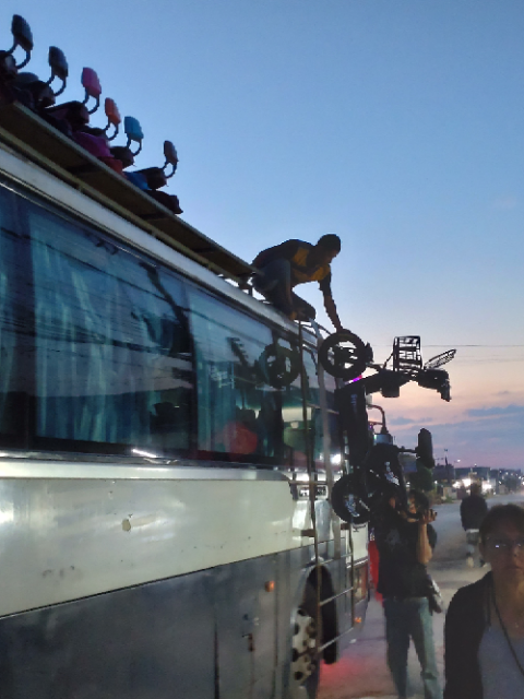 The bus had some seats at the back removed for luggage storage (so we thought) and with our backpacks just behind us, we settled in for the journey. And what a journey. If you had asked someone to make up a bus journey traveling a country alien to them, we doubt they would have got this surreal. We did leave at 12.30 though. Pretty prompt.
