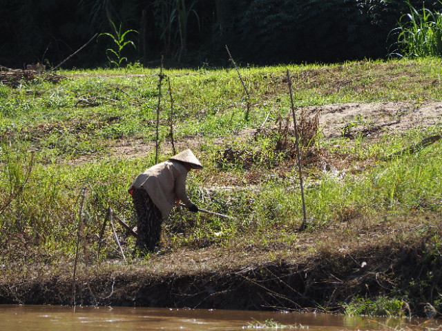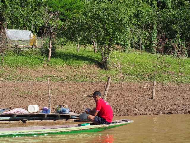 We were woken early by fishermen leaving for a day on the Mekong in their longtail boats, generally powered by a lawnmower engine or car engine with a single prop. They are pretty speedy and noisy and start work about 6am.