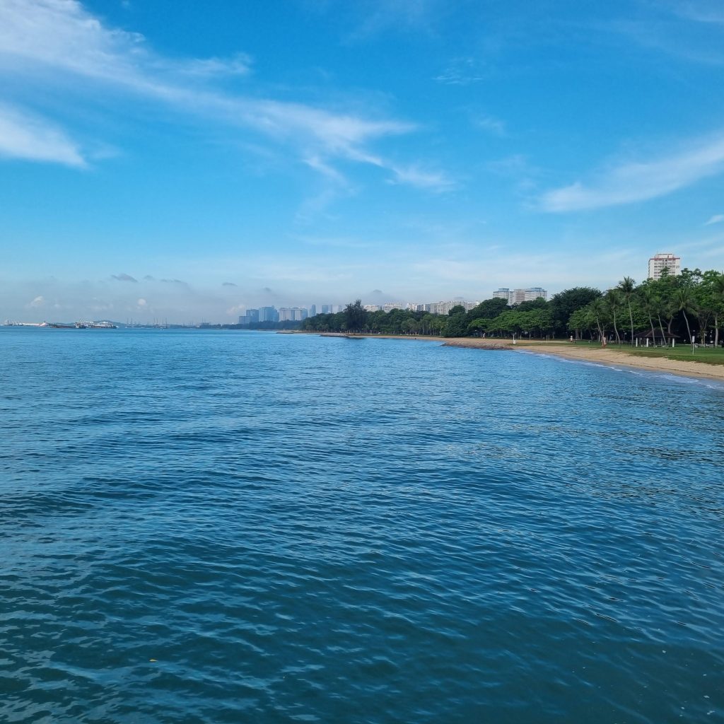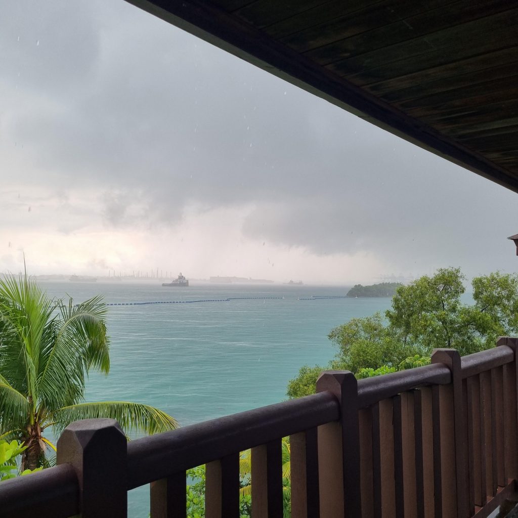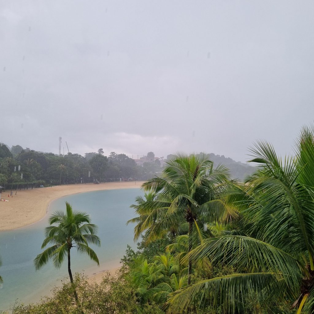 After the many miles of the day before, we jumped on a bus to get the monorail to Sentosa Island and have a bit of time on the beach, from which you can see the shores of Indonesia beyond the many ships in the Singapore Strait.