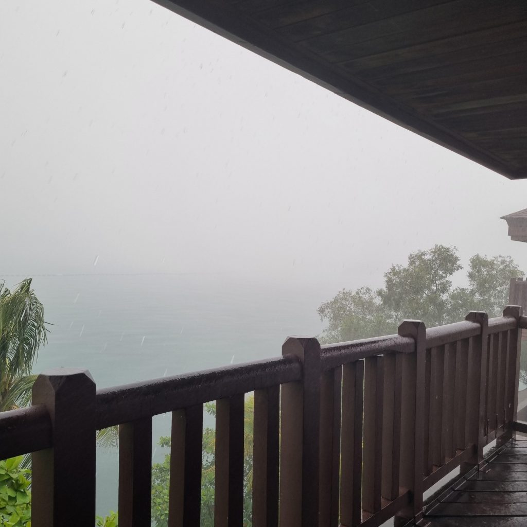 However, our plans for a cooling dip turned out to be getting wet in a different way as we watched the rain come in and a thunderstorm rattled overhead for the next two hours. It was definitely a case of ‘rain forest’! Luckily, we were able to shelter and watch the rain fronts drift by whilst listening to the thunder, but once it eased enough to make a dash for it, we headed back to the hotel.