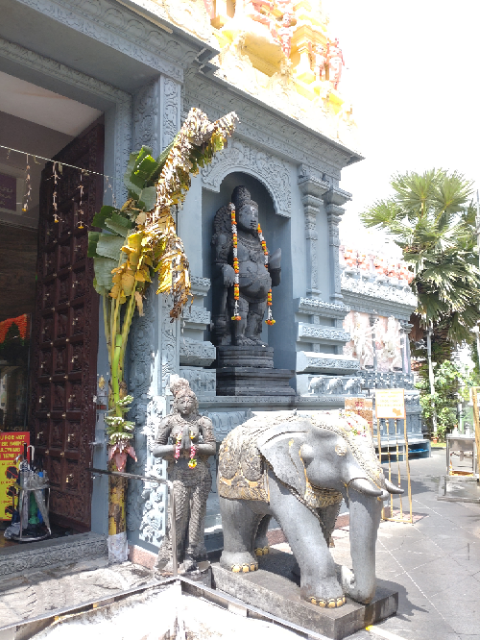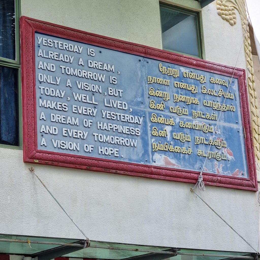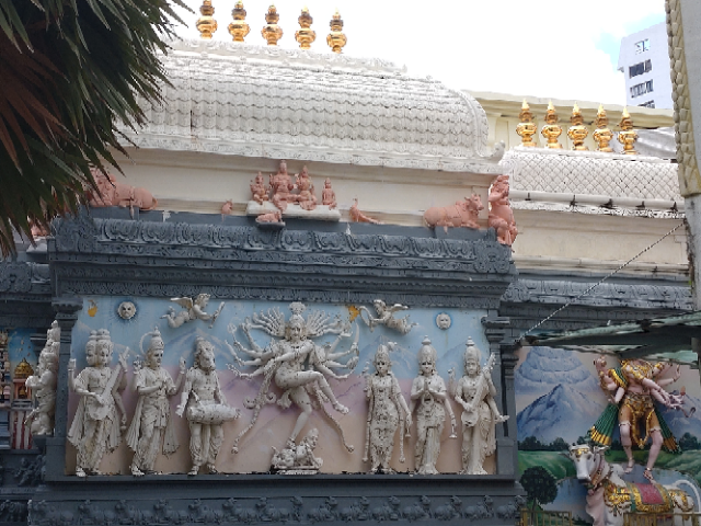 Our walk into the city brought us past a Hindu temple which was not only very attractive but also decorated with very appropriate idiom: