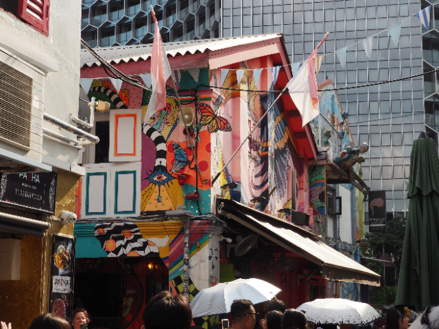 We walked a lot on our first day – along the waterfront to the famous Marina Bay Sands hotel (where we weren’t staying!) and then cut away from the waterfront into Chinatown and then Kampong Glam, which we didn’t explore last time we were here. Even the old buildings here are beautifully kept but sadly there are few of them and much seem to have lost the battle with the newer high rises.
