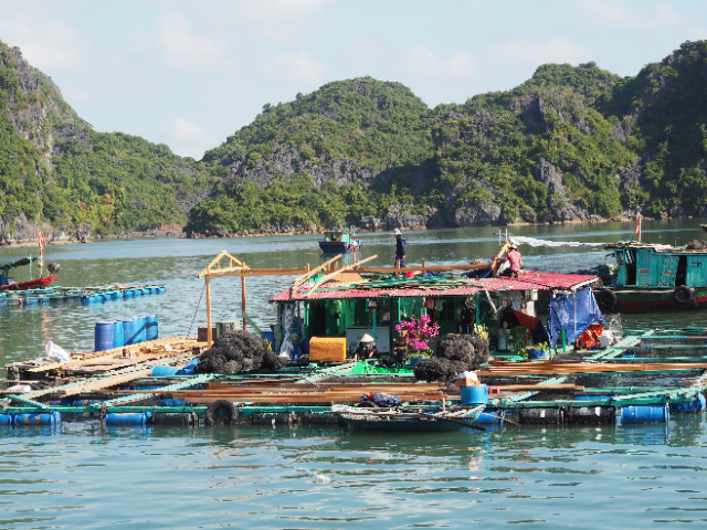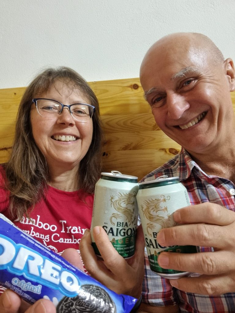 Just before 6:30am we were outside our motel – then realised from the travel confirmation that perhaps the bus was expecting us at the original location where we had dropped the bike. We hot-footed it there (about 300m around the corner) – no sign of a pick-up. Checking the very protracted WhatsApp thread to find that there was a brief mention of our new hotel. We legged it back again (it started raining, again – what a surprise). A car arrived very shortly afterwards and it seemed this was our pick-up. We loaded up, and they drove us the whole 100 yards to the bus station and put us on a large bus (very comfy sleeper bus). Not what we expected, but we were used to things not being quite as expected, so we went with it. At 6.50am the bus rolled out of the bus station – ooh, leaving early? (no one else on the bus!). Nope, it stopped outside the station on the main road and switched off. After much discussion with bus driver, and back on our protracted WhatsApp, it appeared our original pick up had ‘missed’ us and we had been put on the next available transport for Hanoi. It also transpired that we had to pay for this bus (having already paid for the other – although a refund was promised) and that we would miss our connection to Cat Ba. So, another night in Hanoi then and a connection to Cat Ba at 6am the following morning. Our excellent bus company was very “:-(” and “so tired” by then, but they remained helpful and communicative throughout. On the upside, it gave us the opportunity to catch up with a couple of fellow travellers we’d first met in Laos, and share stories over dinner.