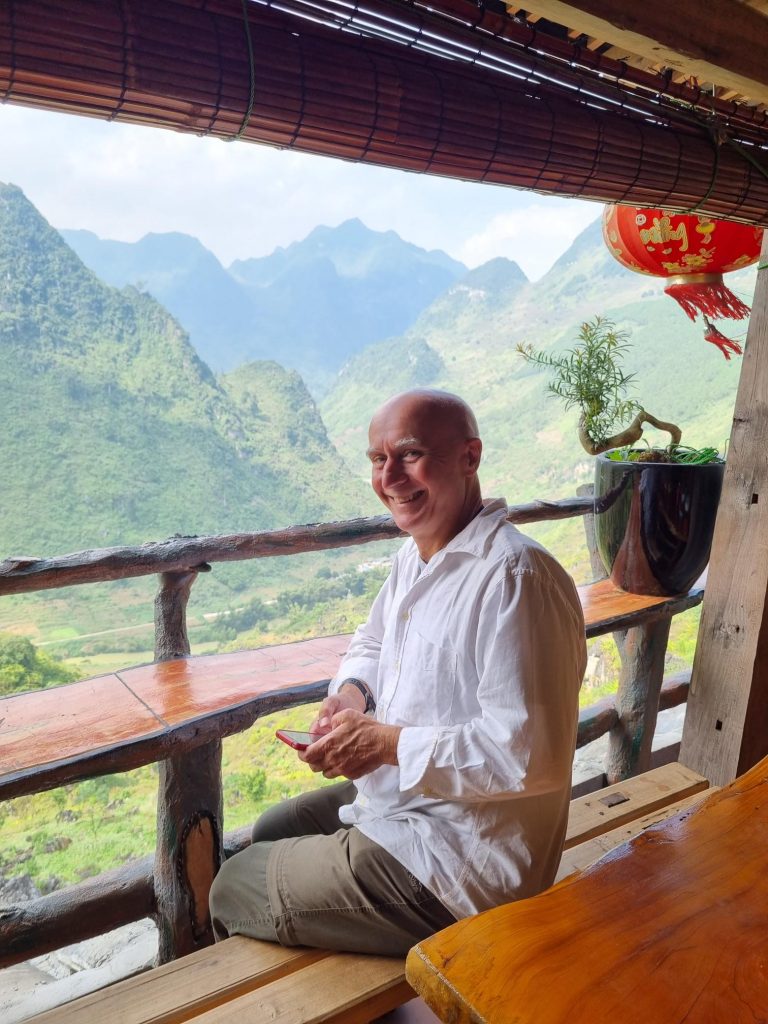 By 3pm we had arrived at Yen Minh after many stunning vistas, lots of twisty roads and quirky roadside stops which reminded us very strongly of Austrian après ski huts – booming music and wooden balconies.