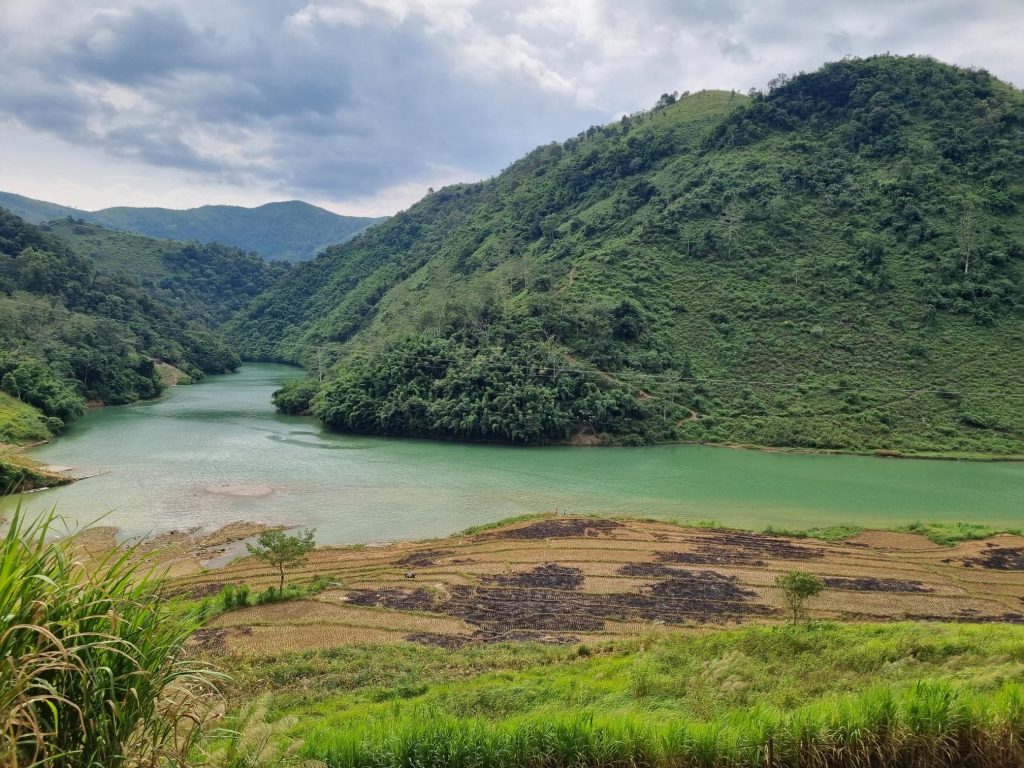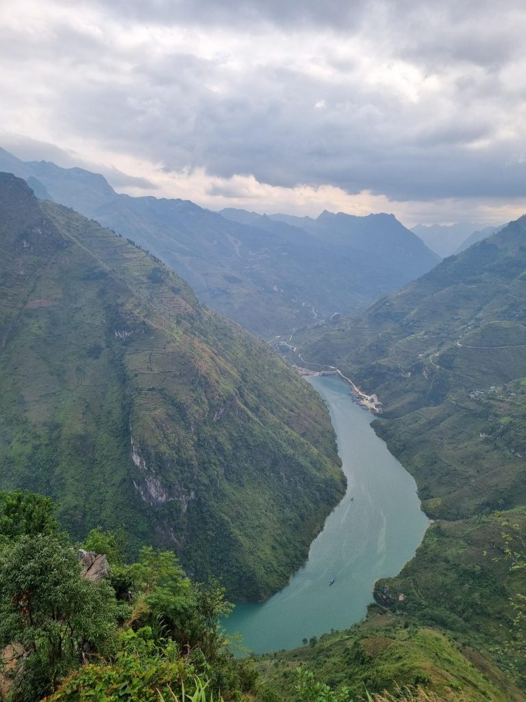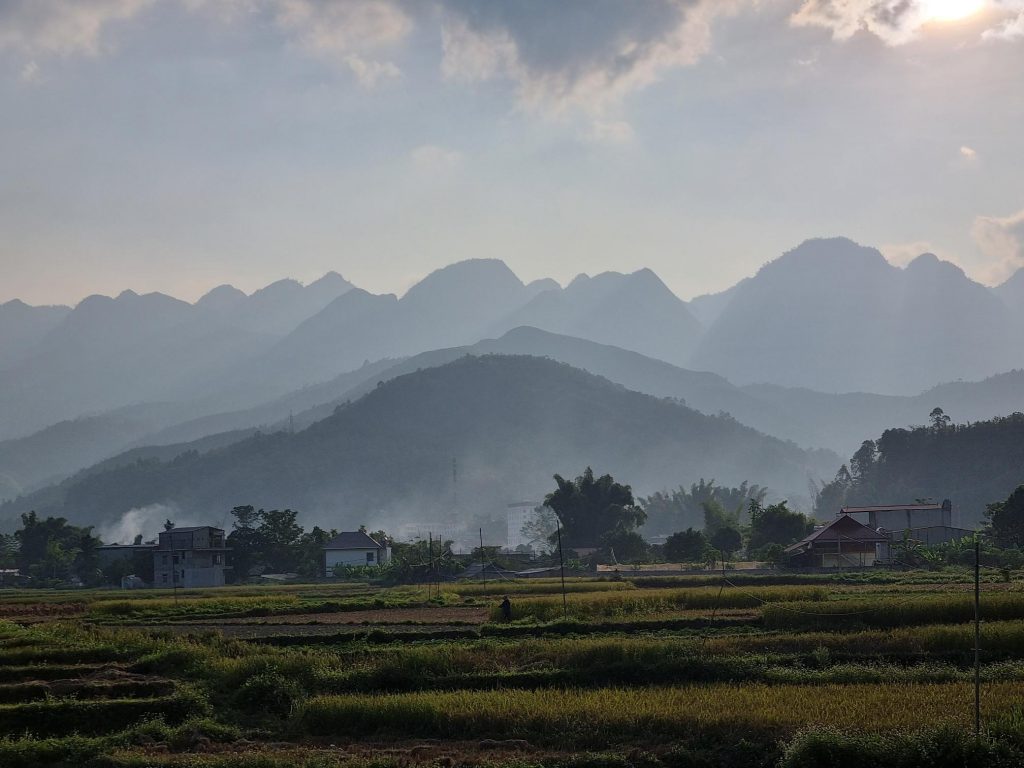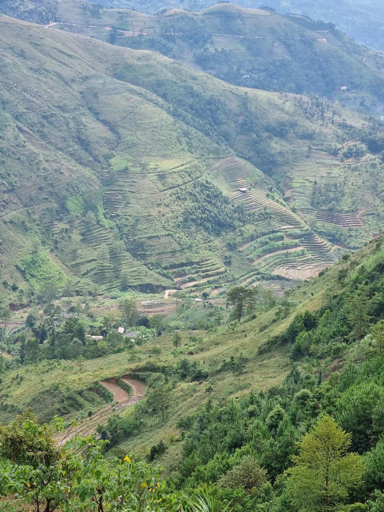 Meo Vac arrived very quickly and we stopped for a coffee before heading off on a small, very lovely, and relatively peaceful road (limited roadworks and very few lorries or buses) towards Bao Lac – a slight detour from the loop, adding on a few more kilometres. It’s a small town on the confluence of three rivers and our final night of the Ha Giang loop. It was amazing how the scenery changed in such a short time, going from vertiginous drops and huge limestone karsts, to a gentler more bucolic scenery.