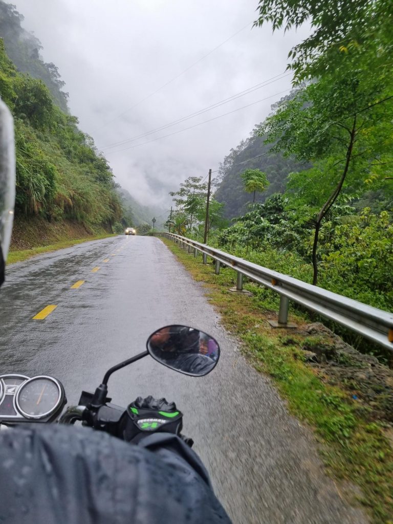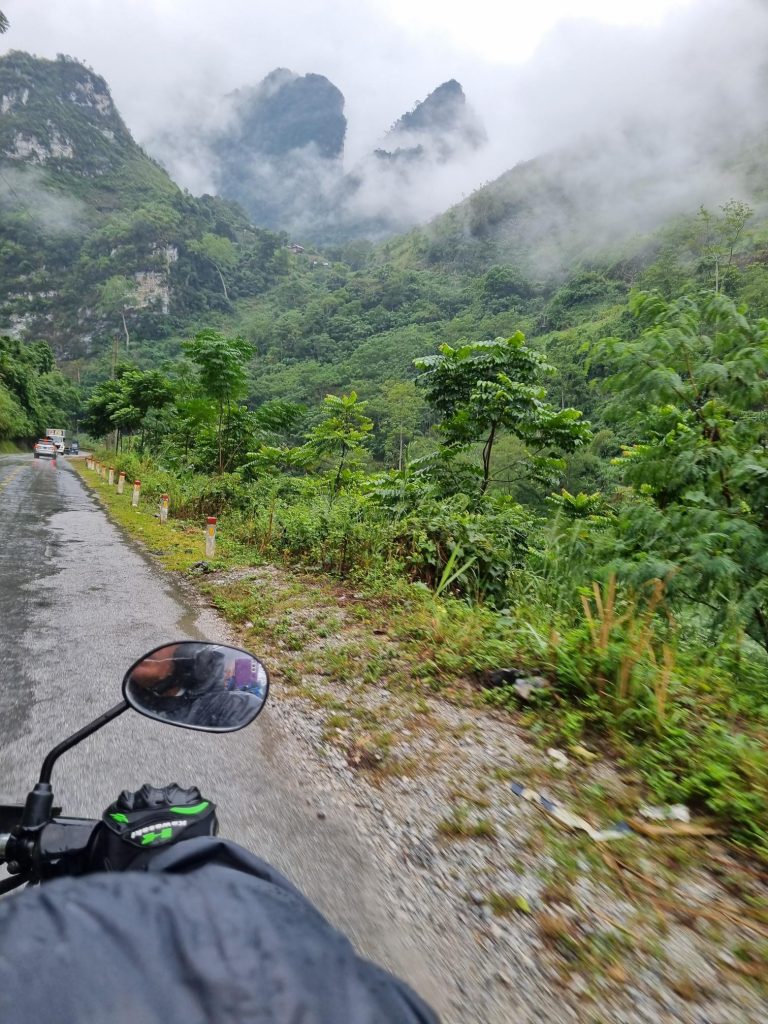 The roads in Vietnam are quite comical (if that’s the right word!!), beautifully laid out with wide streets, lights and street markings in the towns then suddenly narrow, bumpy and twisty, sometimes sealed, often not, along the rest of the route. You can be driving along thinking everything is lovely and then suddenly have to bring the bike to a virtual crawl and bump over potholes, road rubble and rubbish and then all of a sudden, it’s okay again. Very challenging and even more so when it’s raining.