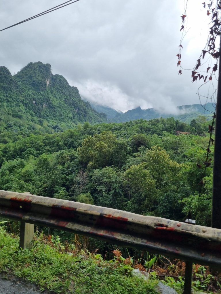 Once more, a small bus whisked us along twisty roads up and down in the mountains and through stunning scenery from Xam Neua and even with the usual ‘Postman Pat’ scenario of stopping at every other building to pick up or deliver, it got us seemingly very quickly to the border post at Nam Soi.