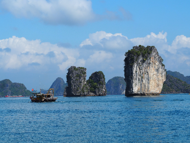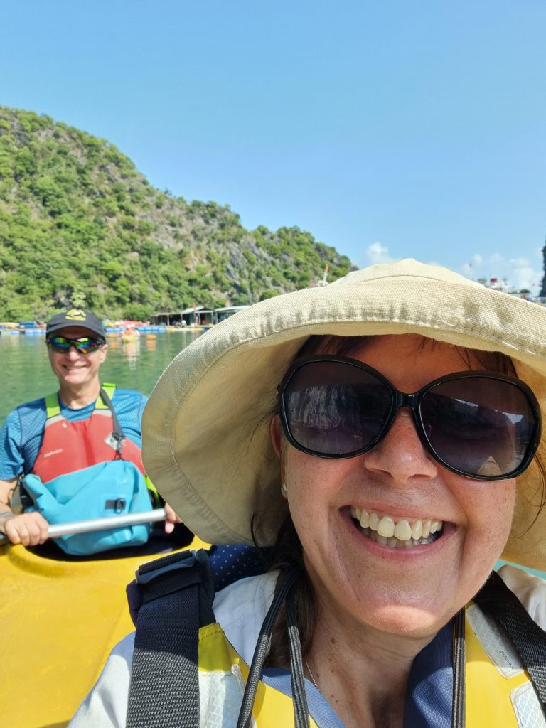 6am the following morning saw us at the bus point for Cat Ba. Everything worked as planned. Hooray! We got there two days late – but we made it!! Quite a backpacker destination, but a bit less so at this time of year; pretty, quiet, and good for sitting in restaurants and people watching. The weather was glorious – two days of sunshine, beach and a boat tour. This included a “we are on the wrong bus and heading for Nimh Binh rather than the harbour” moment (in fairness, we had taken our advice from the hotel owner who sold us the tour!), but all worked for the best in the end, and we had a great boat trip around Lan Ha and Ha Long Bay, kayaking, swimming in wonderfully warm water, and enjoying some delicious food.