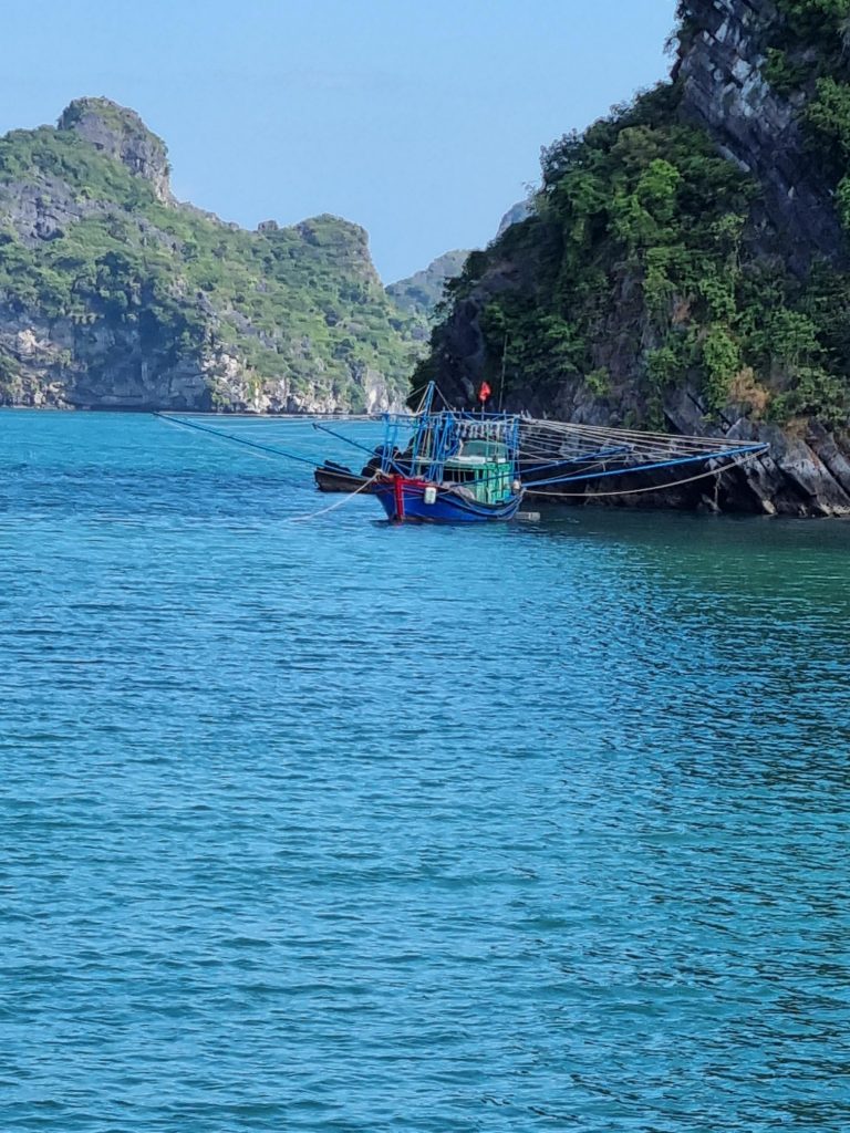 During the delayed exit from Ha Giang to allow for full recovery, we arranged with our excellent bus company via a protracted WhatsApp to be collected at 6:30-7:00am the following day for a connection in Hanoi to Cat Ba Island where we wanted a bit of beach and sunshine (hopefully).