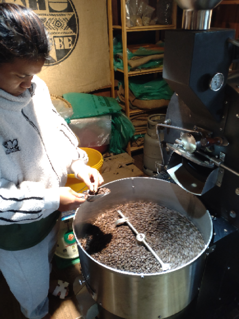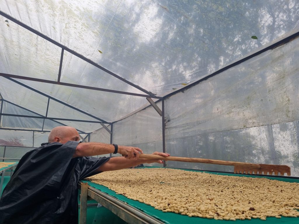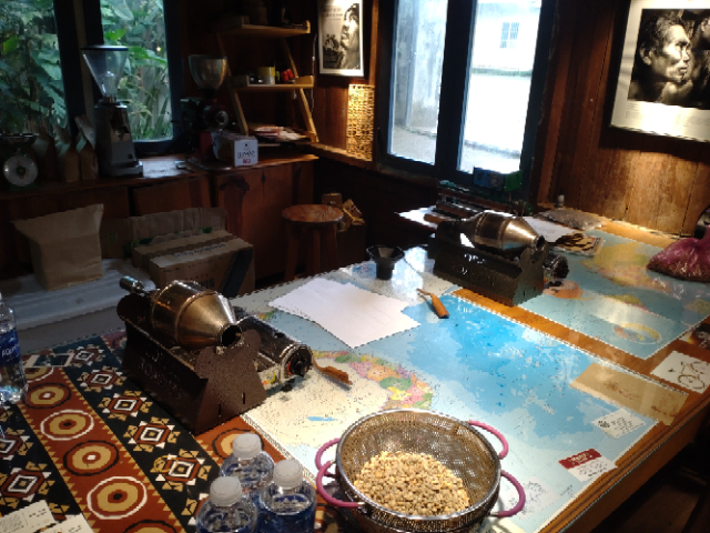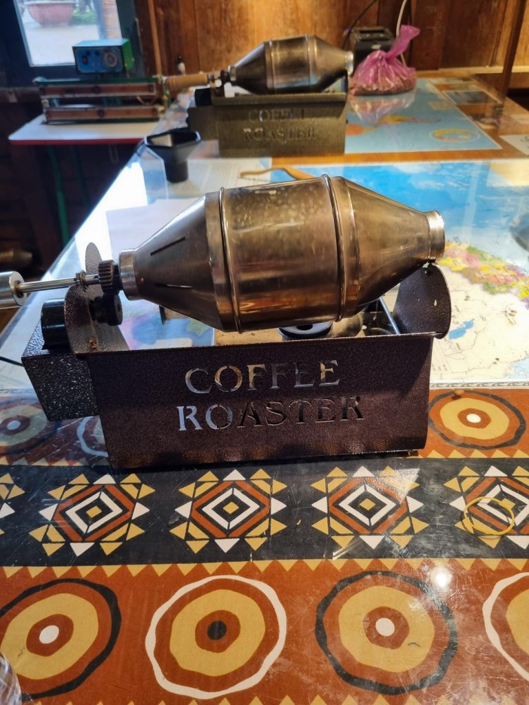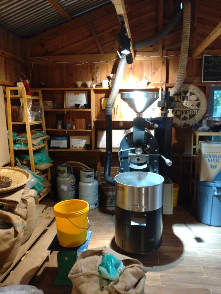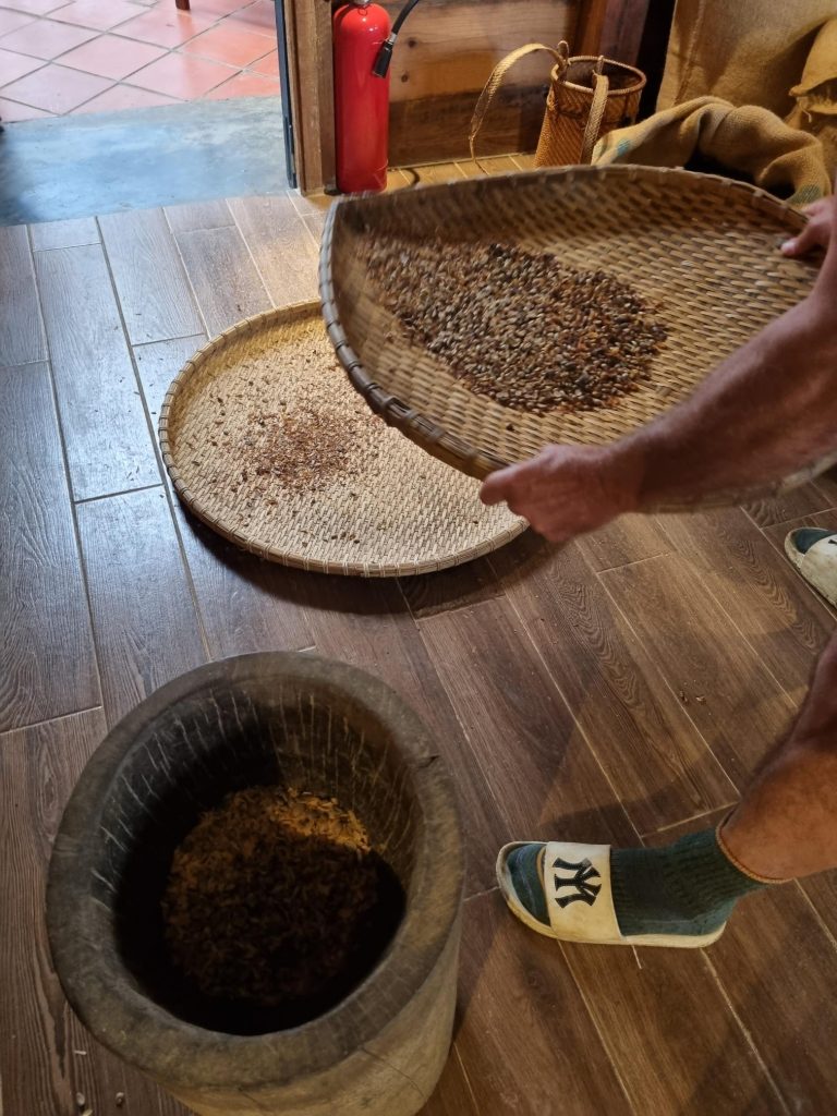 A bouncy journey back to the coffee roasting area and cafe was followed by a fabulous picnic lunch and then our chance to prepare the beans for roasting began.