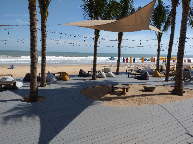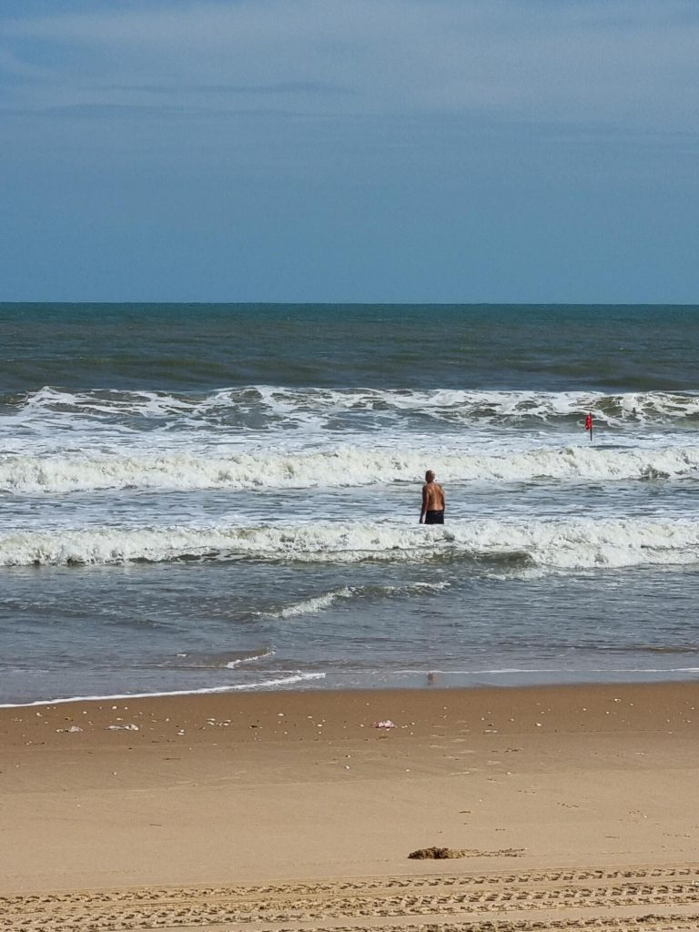 On our first day there, a lovely warm onshore breeze was making some pretty large waves, which one of us particularly enjoyed when we stopped for a cold drink at Bikini Beach (a huge hotel resort, which, despite its idyllic beach appeared to be almost deserted)