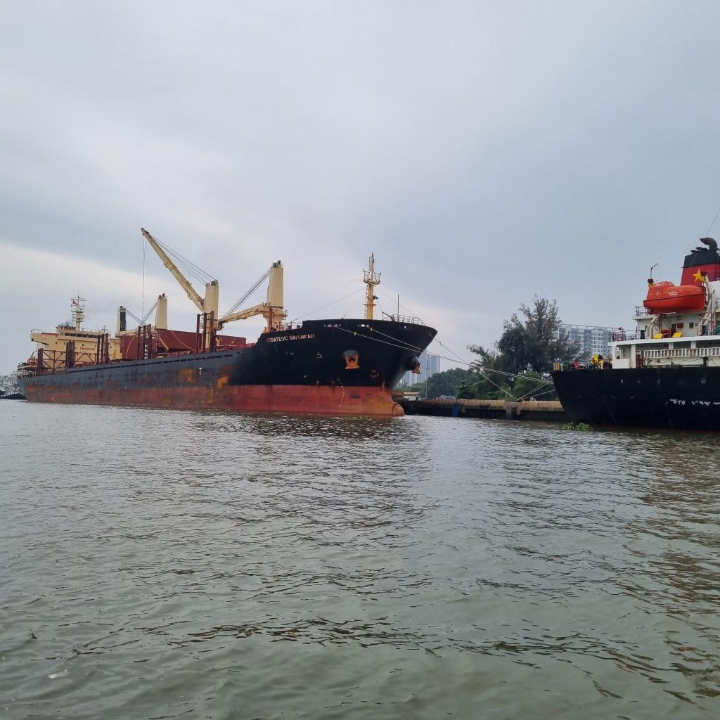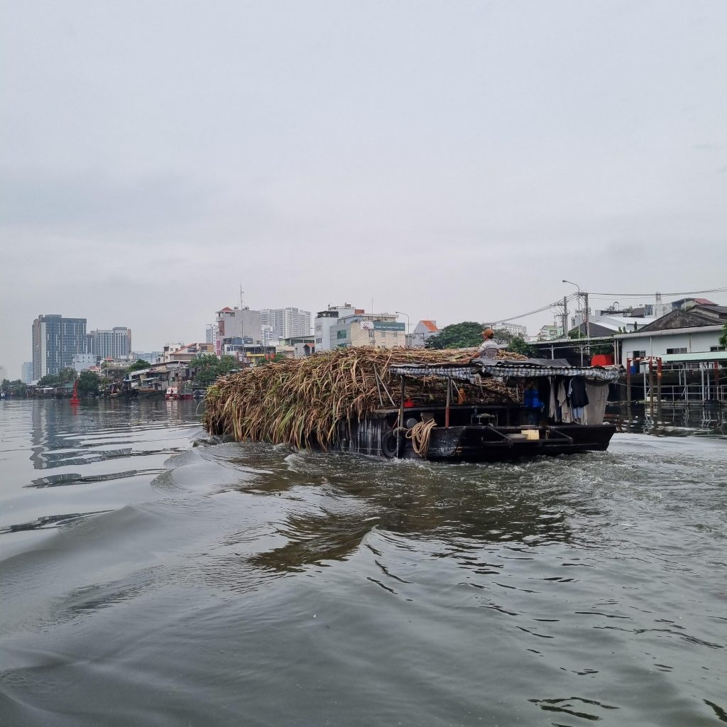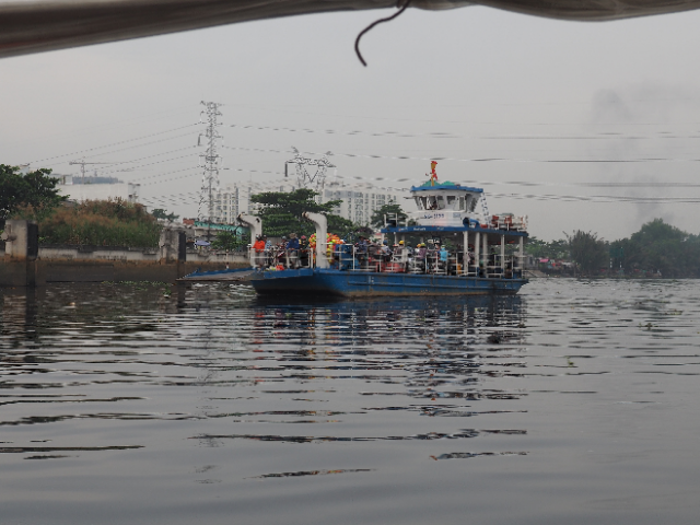 Day three was an exploration of the Saigon River in a northerly direction; a tour is booked to take us South on another day. A fairly recent attempt to set up a river taxi system, much like that on the Thames apparently seems not very successful as a commuting method, but it has become a popular way for tourists to see HCM from the river. We got on at the 1st station with a ticket to it’s terminus five stops north and watched the city float serenely past. A relaxing way to spend an hour followed by a walk across a peaceful island to hop onto a local bus to take us back into the city centre, a journey of about another hour through many interesting and busy communities.