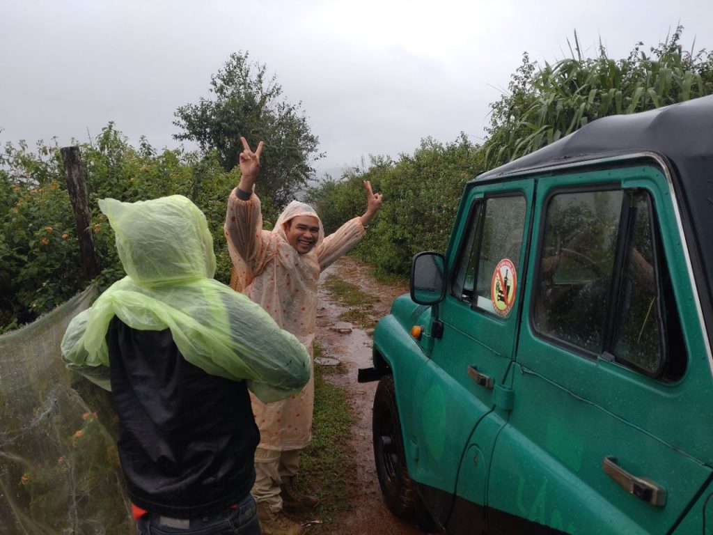 After an introduction to the other couple on our ‘tour’ we had a coffee (of course!) alongside the usual Vietnamese tea (often served together, the tea being palate cleansing and thirst quenching with the coffee giving you a bit of energy, they complement each other well). Whilst sipping coffee we shouted at each other above the noise of the thunderstorm raging overhead and laughed at the thought of doing a plantation tour ‘in this weather’! Oh how we laughed when we donned ponchos and headed out to the vehicle to transport us to the plantation itself.