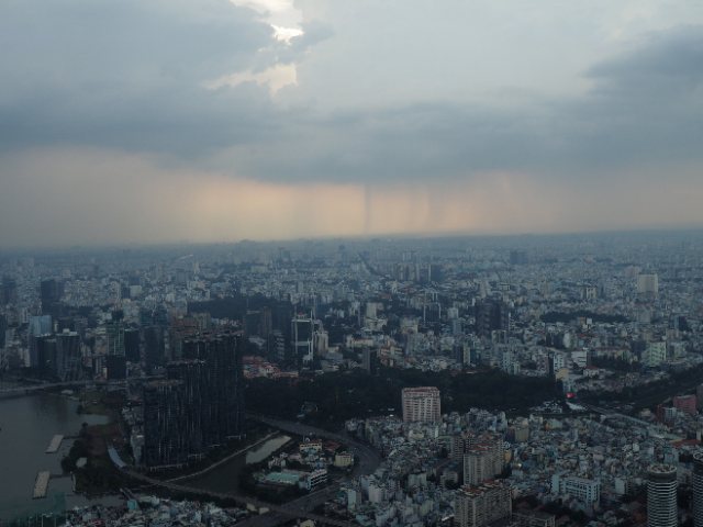 We really did have a great time – it was incredibly quiet (maybe a dozen people spread over the three floors) so we didn’t have to jostle with others to get a good picture,and the views were amazing, not only of Ho Chi Minh, but also of the weather fronts passing us by.